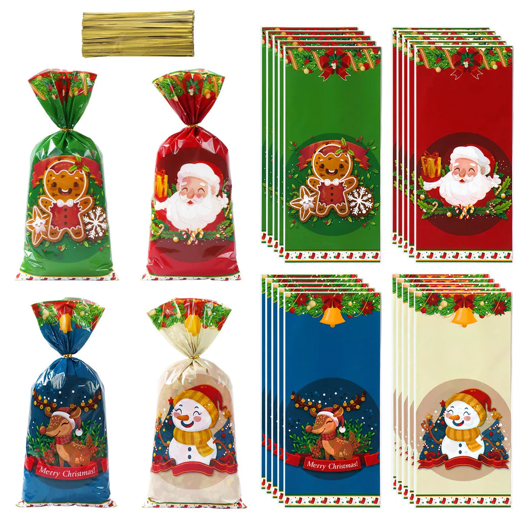25/50/100pcs Santa Claus Cookie Baking Packaging Bags Transparent Plastic Gift Bags Christmas New Year Party Decoration