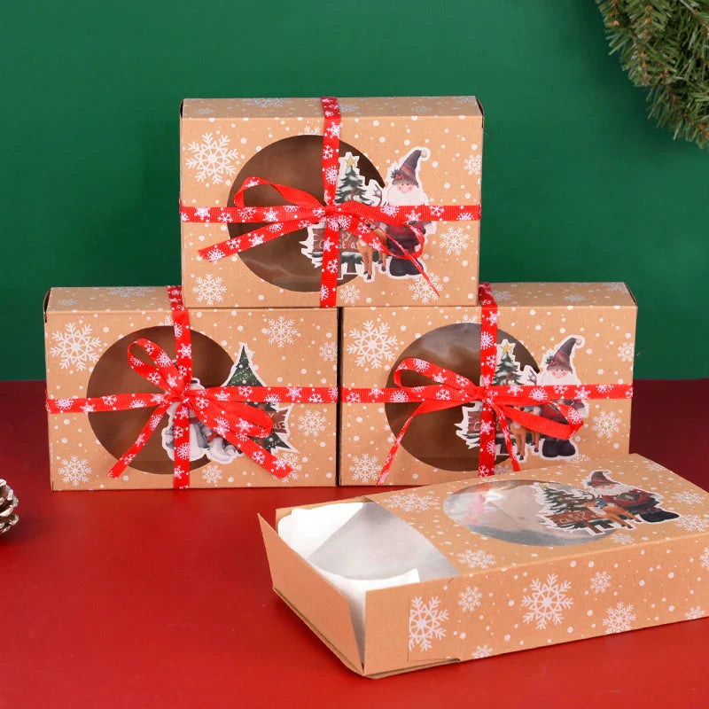 2pcs Big Christmas Candy Gift Box with ribbon Kraft Paper Cookies Packing Boxes Merry Christmas Party Decoration New Year 2024