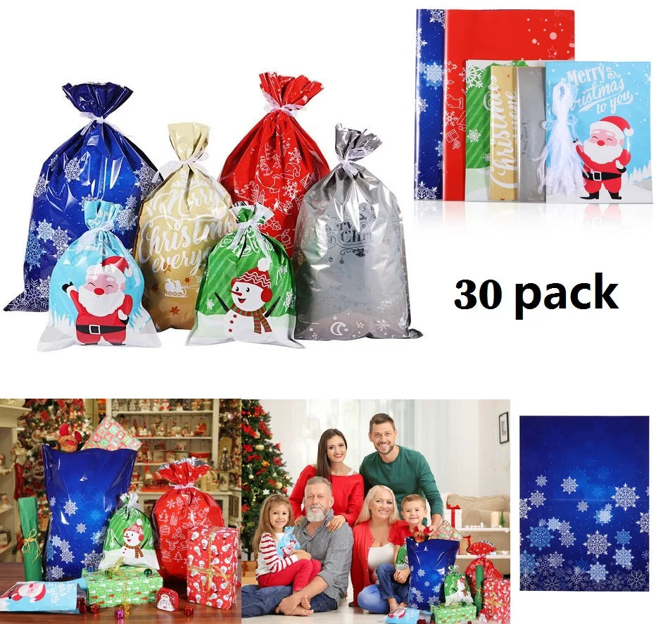 30 Pcs Christmas Drawstring Gift Wrapping Bags, Assorted Sizes