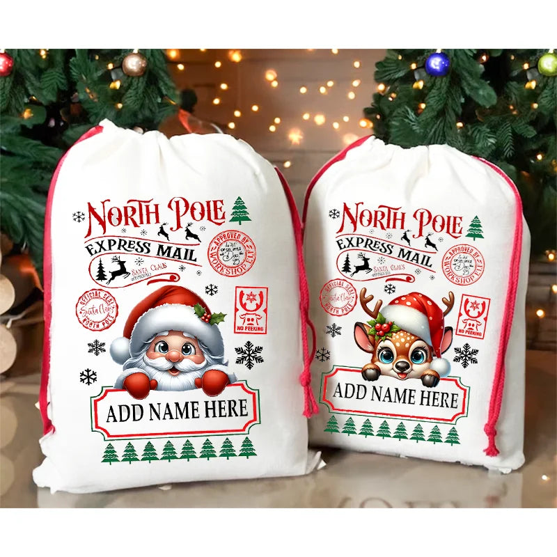 30x40cm Custom Santa Claus Reindeer Xmas Gift Bag Personalised Santa Sack for All Ages Christmas Present Sack & Stocking Decor