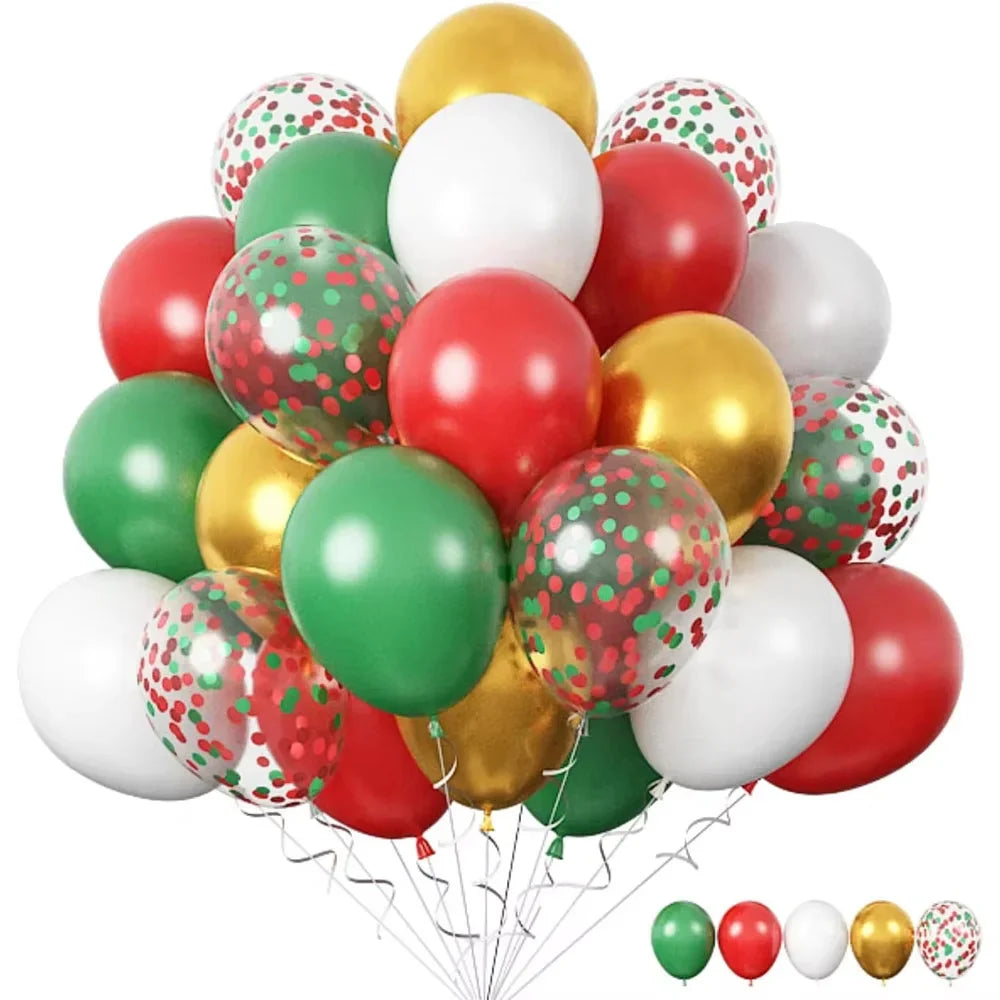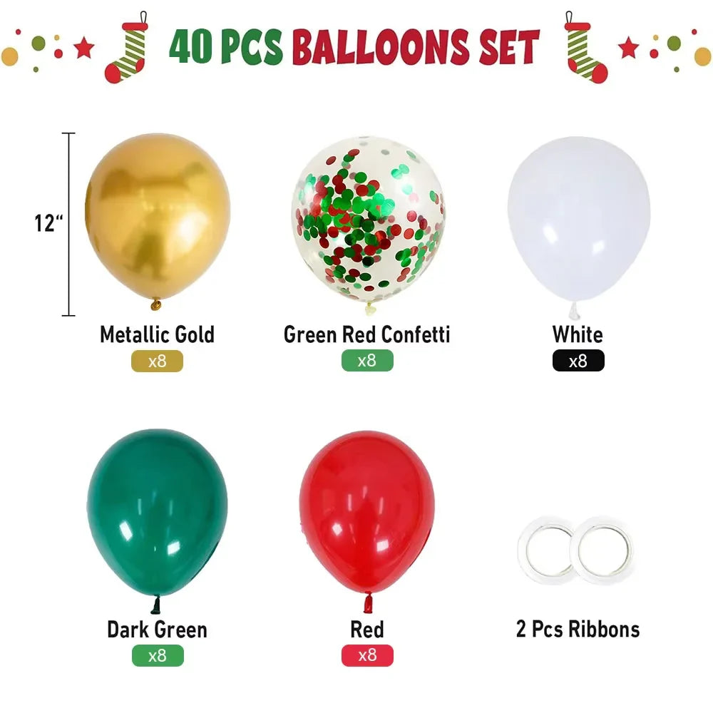 40pcs 12inch Christmas Balloons Metallic Gold Red Green Confetti Balloons for Happy New Year Merry Christmas Party Decoration