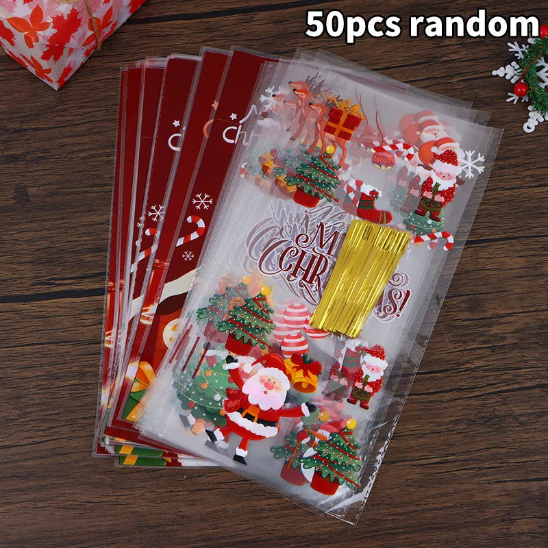 50Pcs Christmas Plastic Candy Bag Snowflake Tree Cookies Packaging Decor