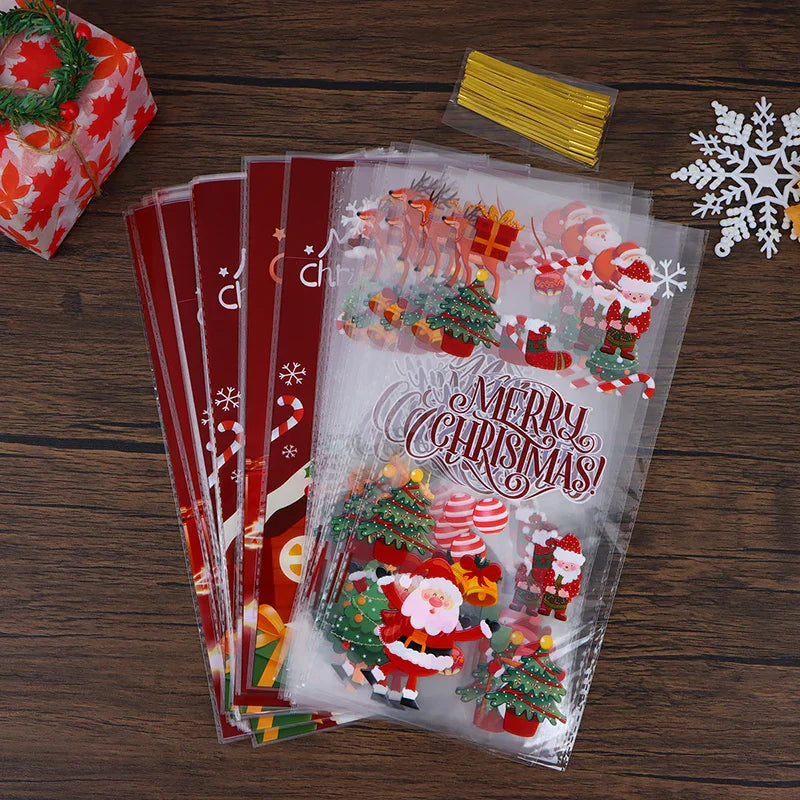 50/100pcs Christmas Treat Bags Self-Sealing Candy Cookie Biscuit Pouches Festive Christmas Decorations 2025 Xmas Holiday Gifts
