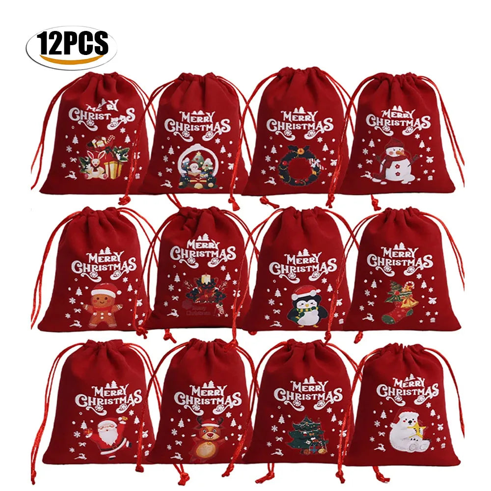 12/24pcs Set of Christmas Small Gift Bags Retro Christmas Fox Leather Paper Bags Christmas Calendar Gift Bags Countdown Set