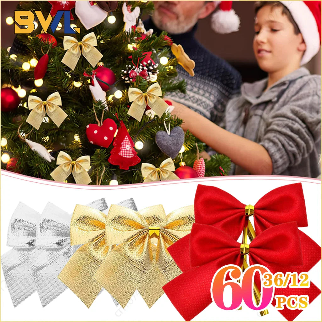 12-60PCS Mini Christmas Tree Ribbon Bows Ornaments Decorative Bowknots for Wreath Decoration and Holiday Gift Wrapping Supplies