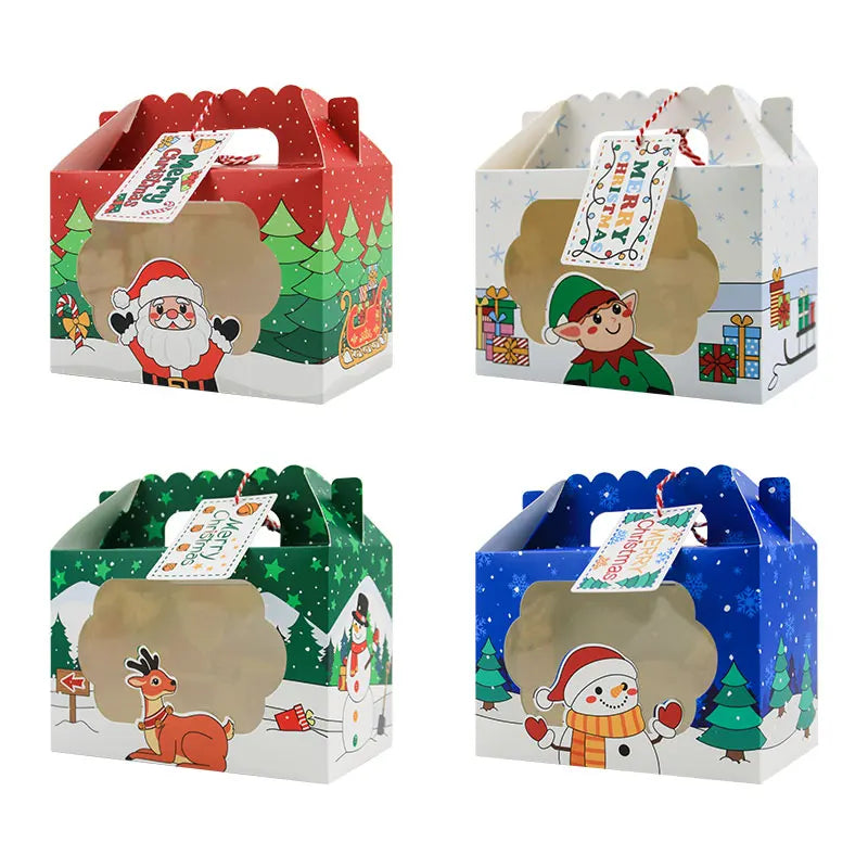 12pcs Christmas Paper Box with Window Handle Candy Box Soap Candle Cookie Candy Little Gift Packaging Party Favors Decor
