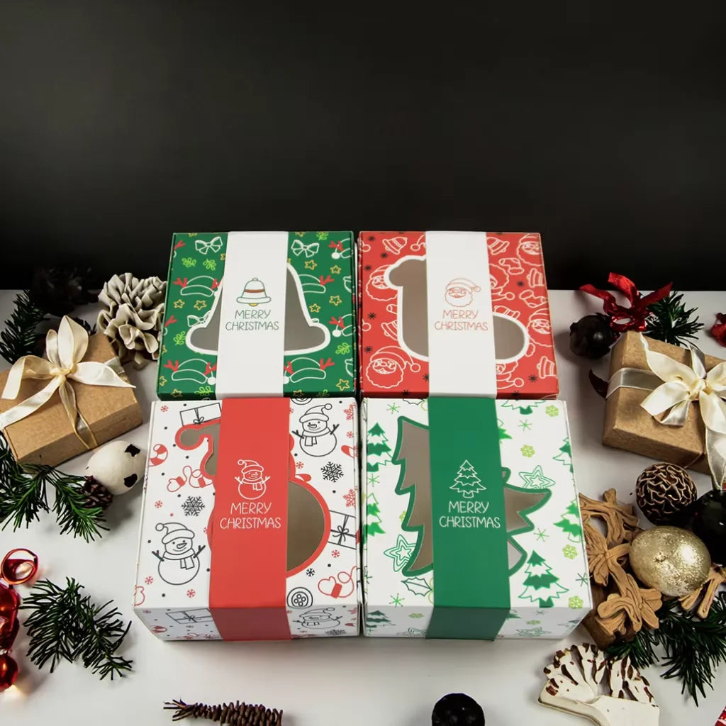 12PCS Festive Christmas Gift Boxes-Folding Packaging boxes with Santa, bell&snowman Designs, Perfect for Holiday Party Favors