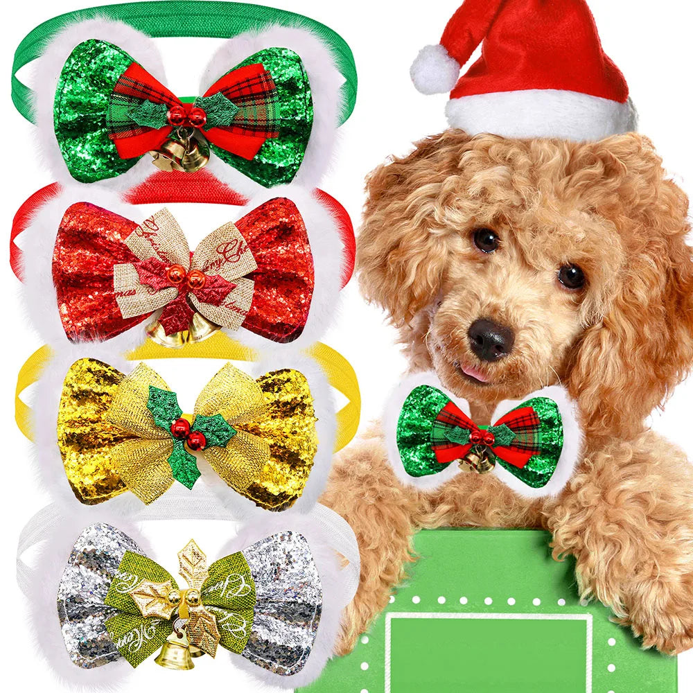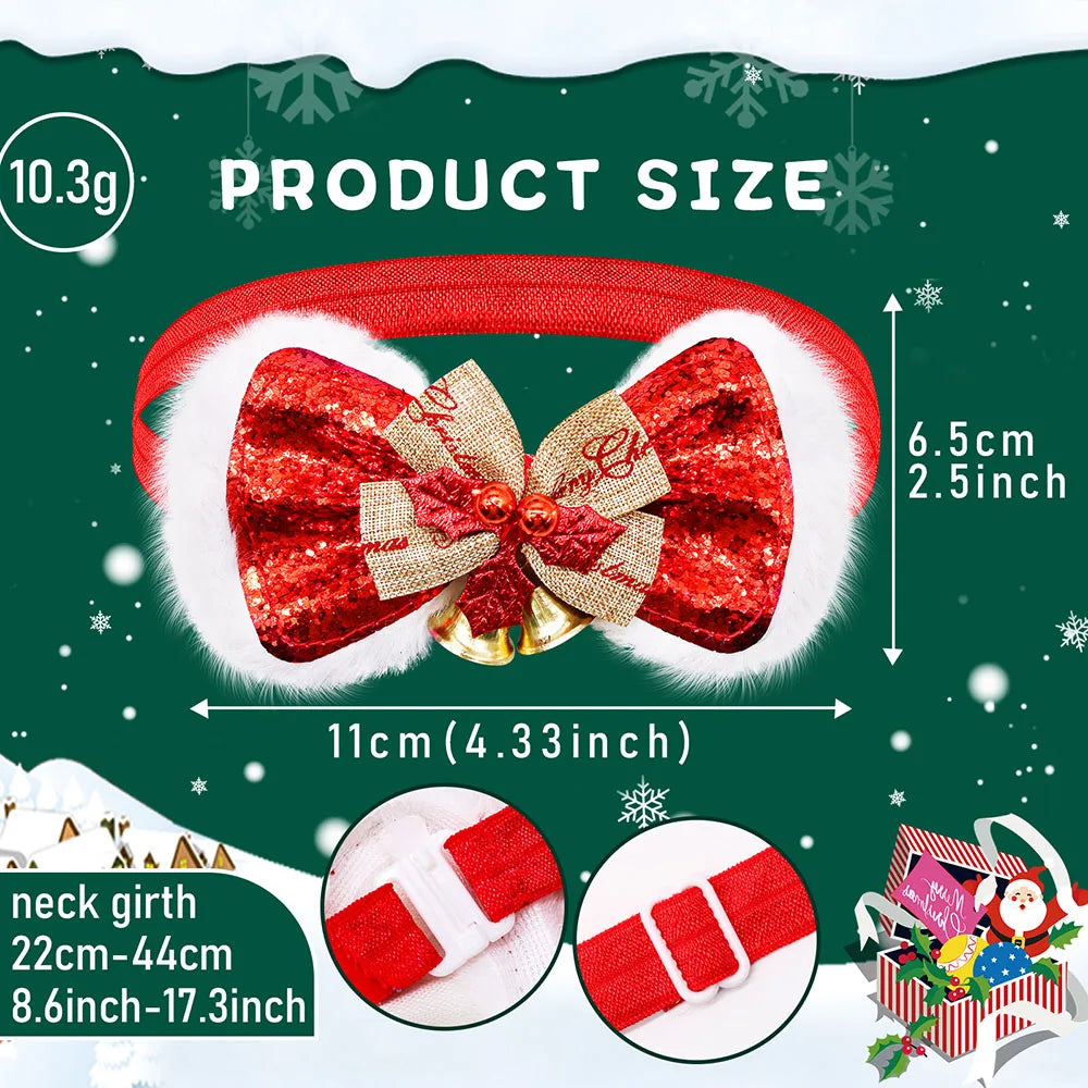 1PC Plush Dog Bowties Adjustable Christmas Pet Collars For Dogs and Cats Fashion Dog Collars Dog Grooming For Christmas