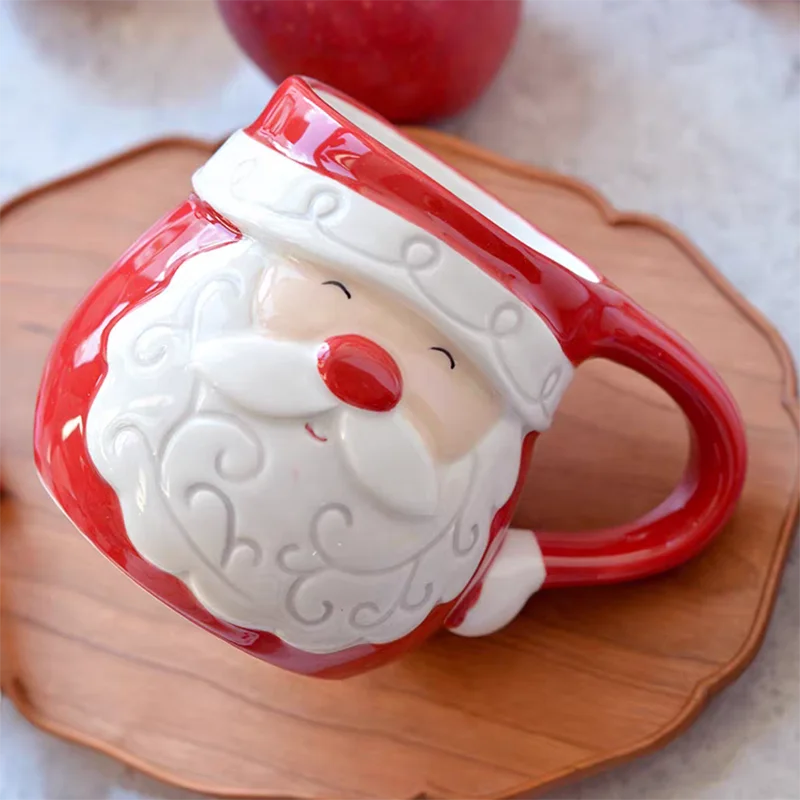 Santa Claus Ceramic Mug Nordic Style Elk Embossed Coffee Cup Breakfast Oatmeal Milk Soup Cups Household Water Cup Christmas Gift