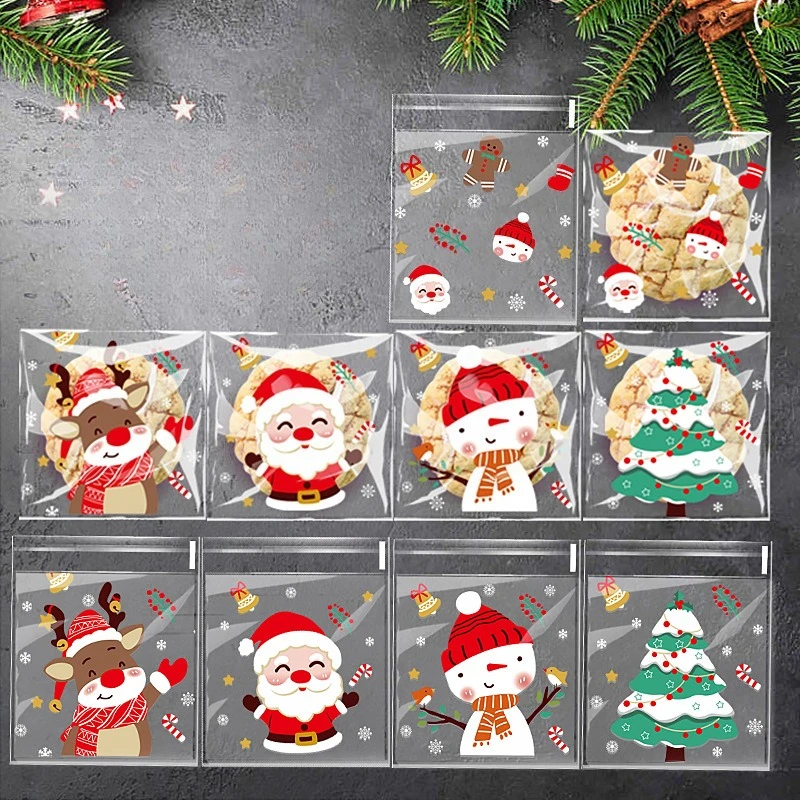 100pcs 10X10cm Christmas Treat Bags Santa Claus Cookies Candy Bag Self Adhesive Gift Bag Home Christmas Decorations Kids Gifts - mix / 100pcs is backordered and will ship as soon as it is back in stock.