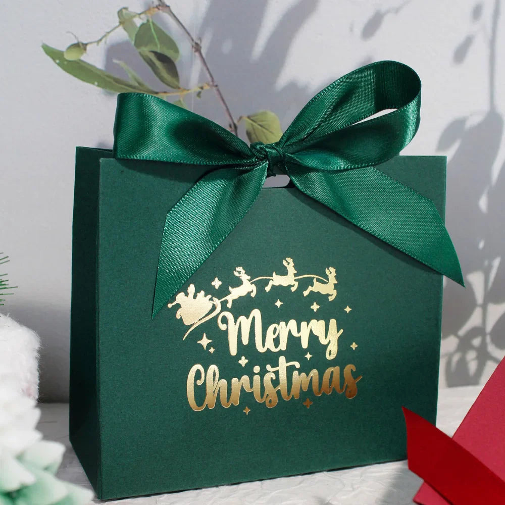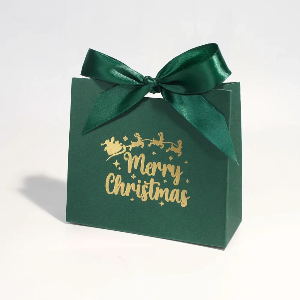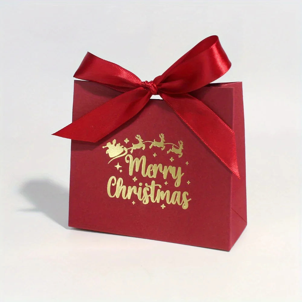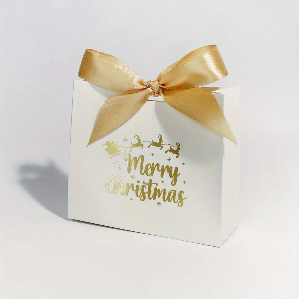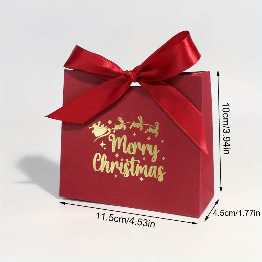 10pcs Ribbon Mini Christmas Gift Boxes - Festive 'Merry Christmas' Design for Candy, Chocolates & Small Presents