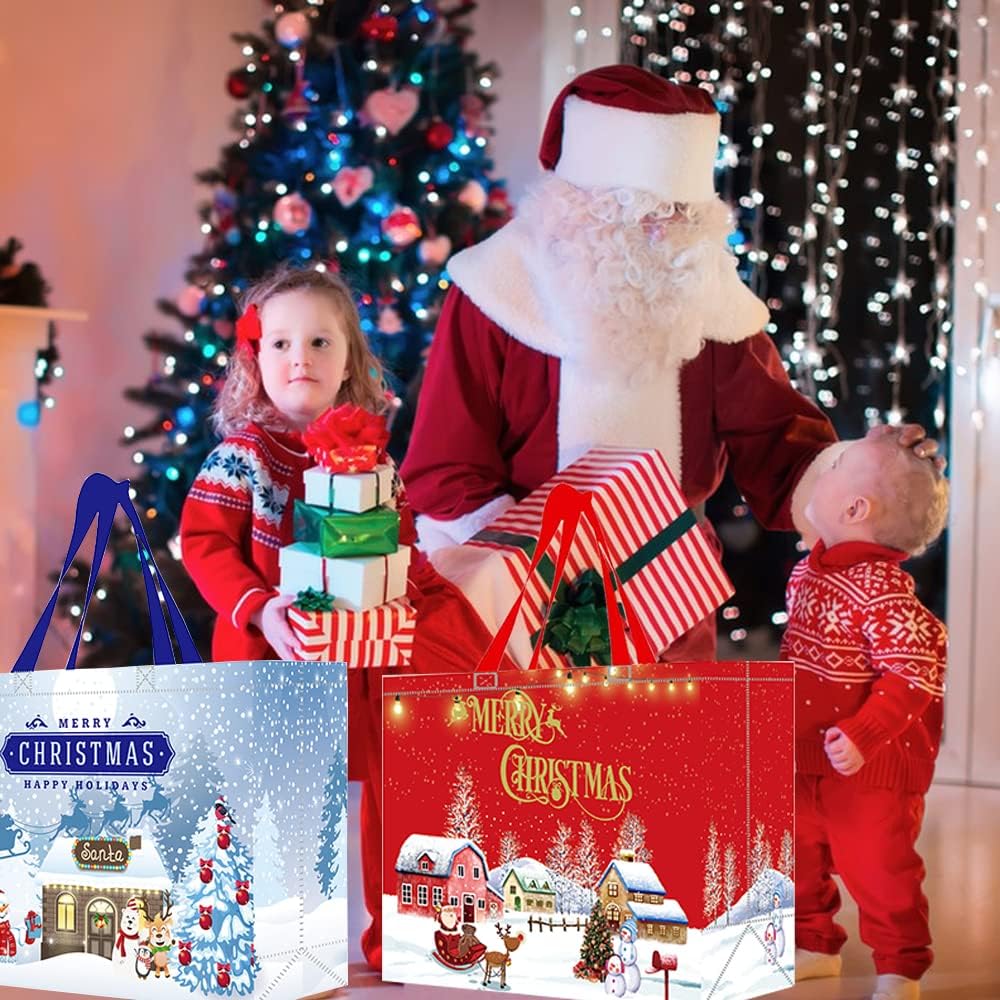 - 🎁Useful:The Christmas gift bags are with the portable and strong handles, easy to carry,bright and long-lasting.These bags make gifting easy, no need to wrap your gift, just put the gift in these roomy bags, add some tissue paper and you’re ready to gift.