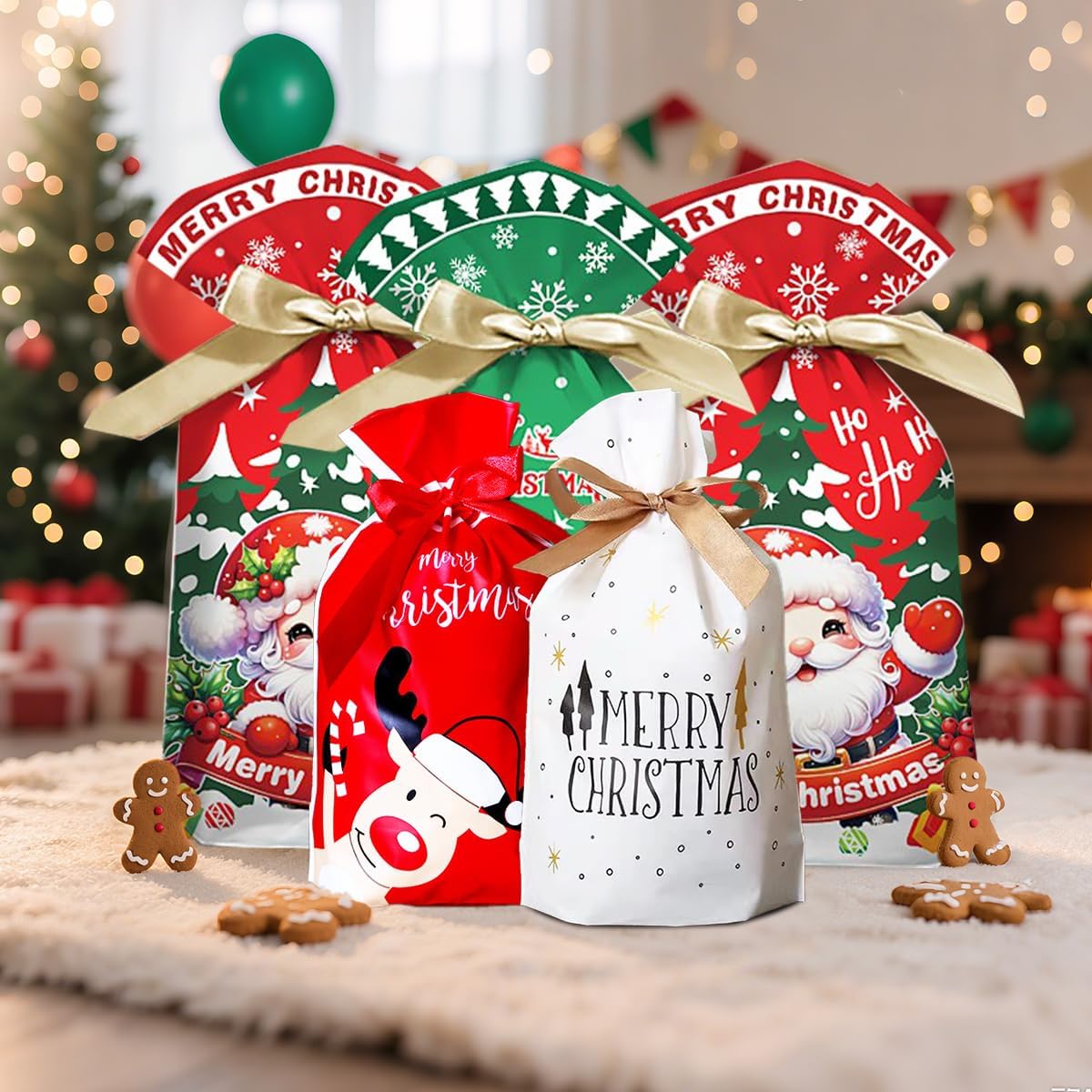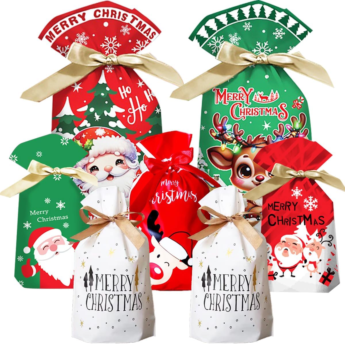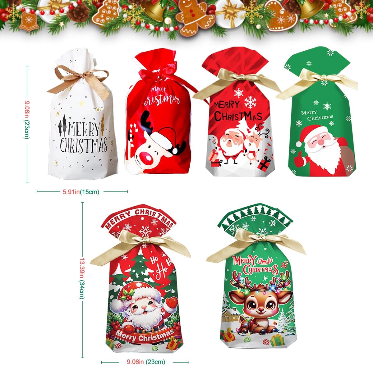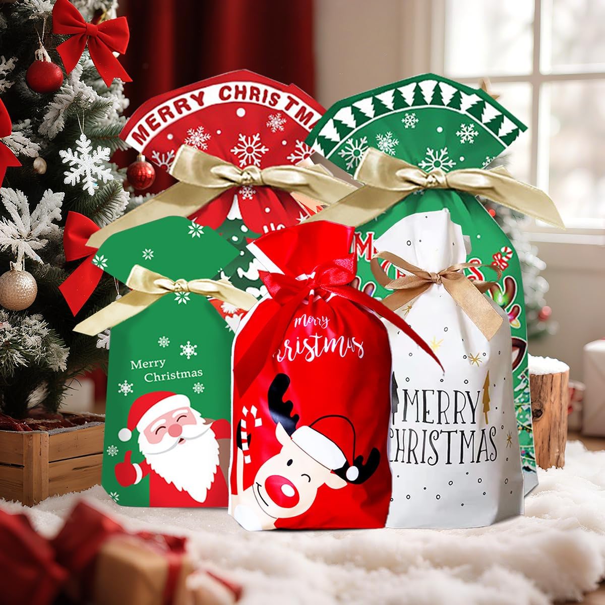 30 Pcs Christmas Drawstring Gift Wrapping Bags, Assorted Sizes