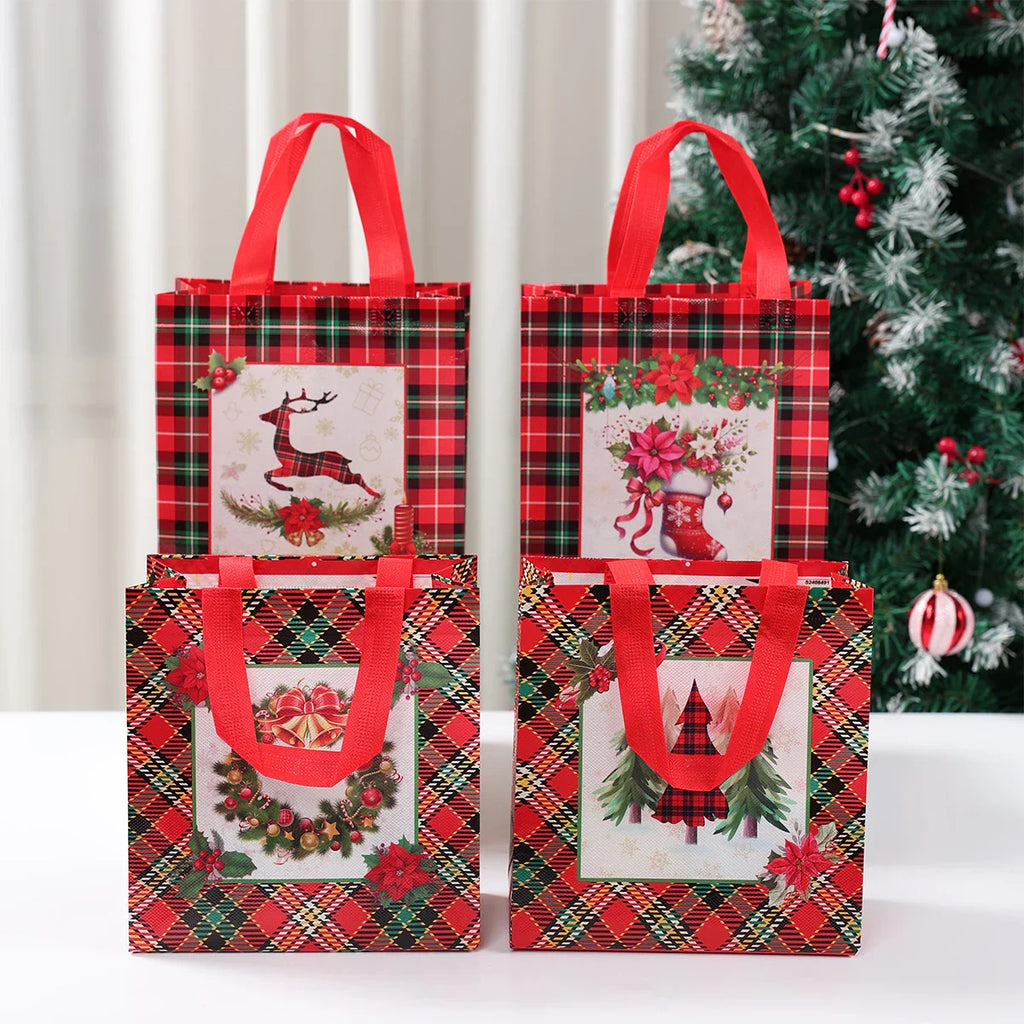 4pcs Christmas Gift Bags Santa Claus Snowman Non-Woven Christmas Tote Bag with Handles Christmas Decorations For Home 2025 Gifts