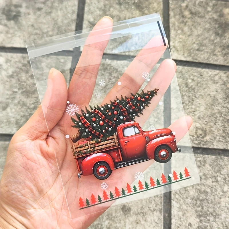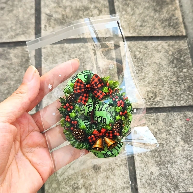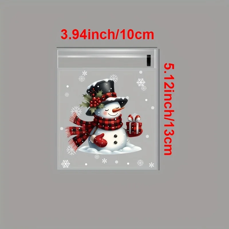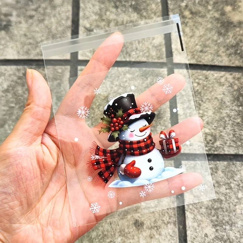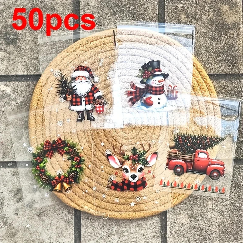 50/100pcs Christmas Gift Wrapping Bags with Snowflake, Santa Claus, Reindeer, and Holly Print Self-Adhesive Packaging Bags