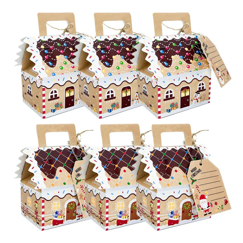 6/12pcs Christmas Gingerbread House Shape Candy Gift Boxes Kraft Paper Cookie Snack Packing Bags Xmas Party Home DecorationsNoel