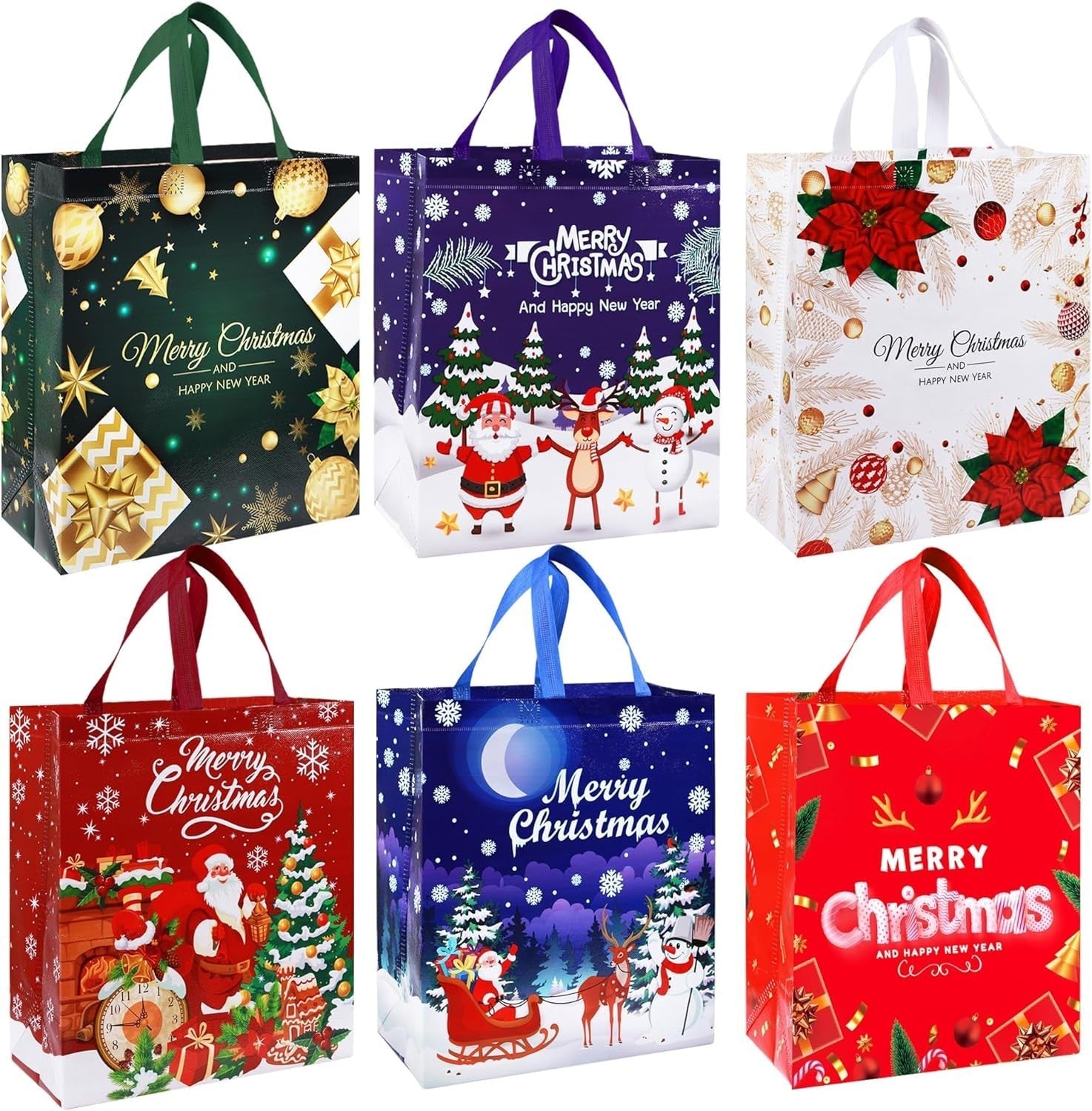 Package Include: Our Christmas gift bags come in a set of 6,have 6 different classic Holiday designs,This variety adds excitement and charm to your gift-giving experience, perfect for Christmas parties and family gatherings