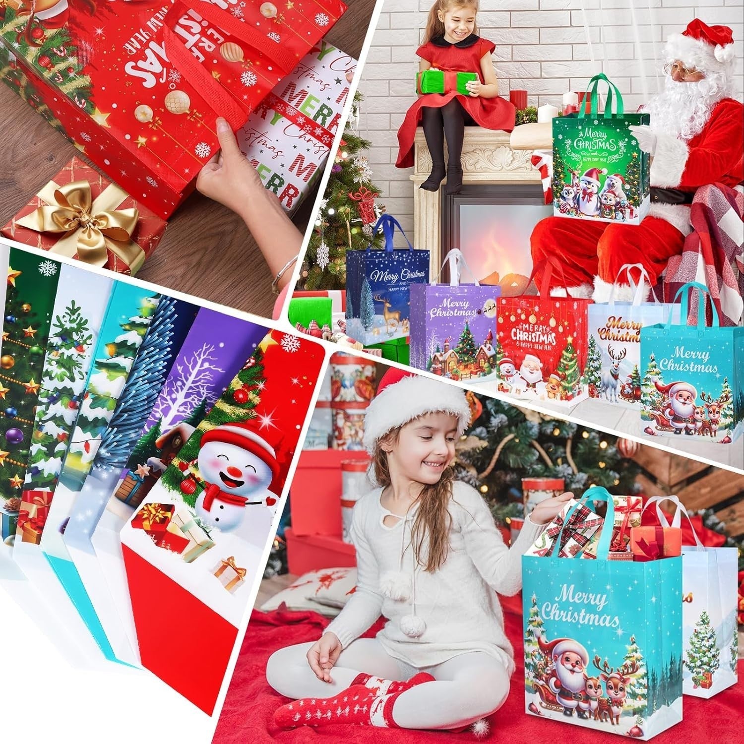 PACKAGE QUANTITY: Our Christmas gift bags come in a set of 6,have 6 different classic Holiday designs,, Patterned with various Christmas elements, enough to meet your requirements for Xmas gift bags and makes your Christmas party and decorations more beautiful and attractive.
