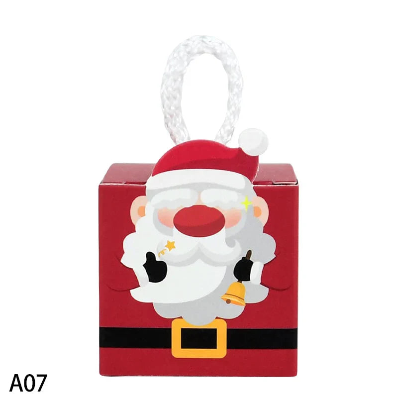 8Pcs Christmas Treat Boxes With Handles With Santa/Snowman/Christmas Tree Prints For Xmas Party Favor Packaging Gift Giving