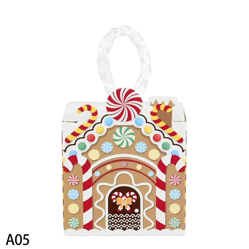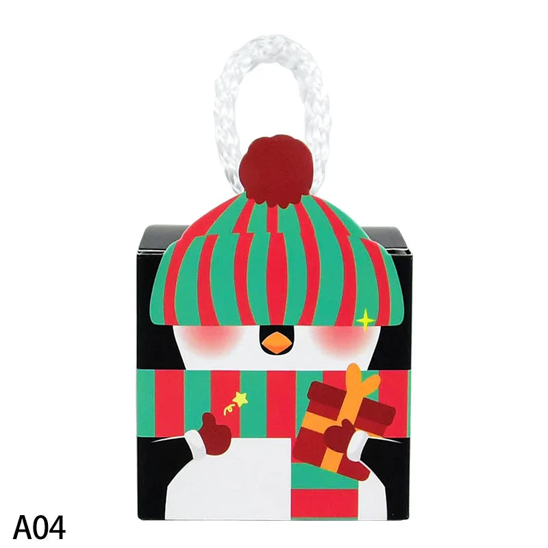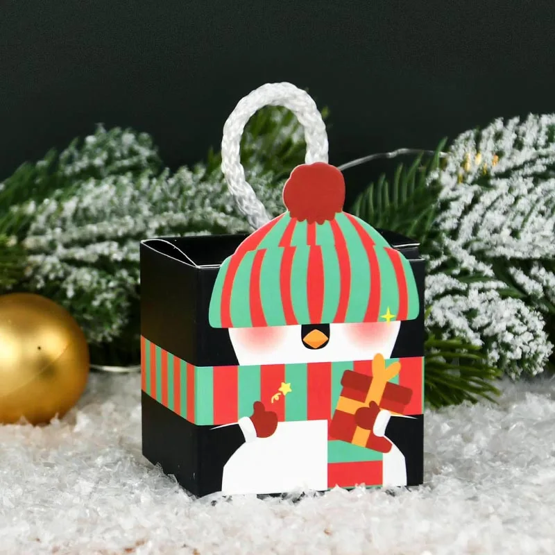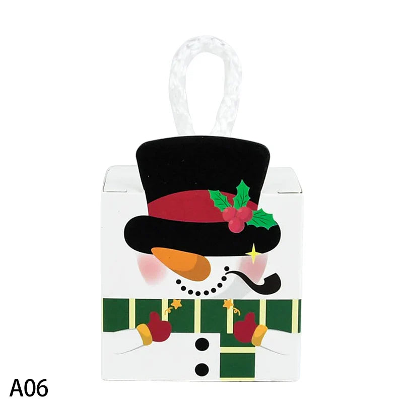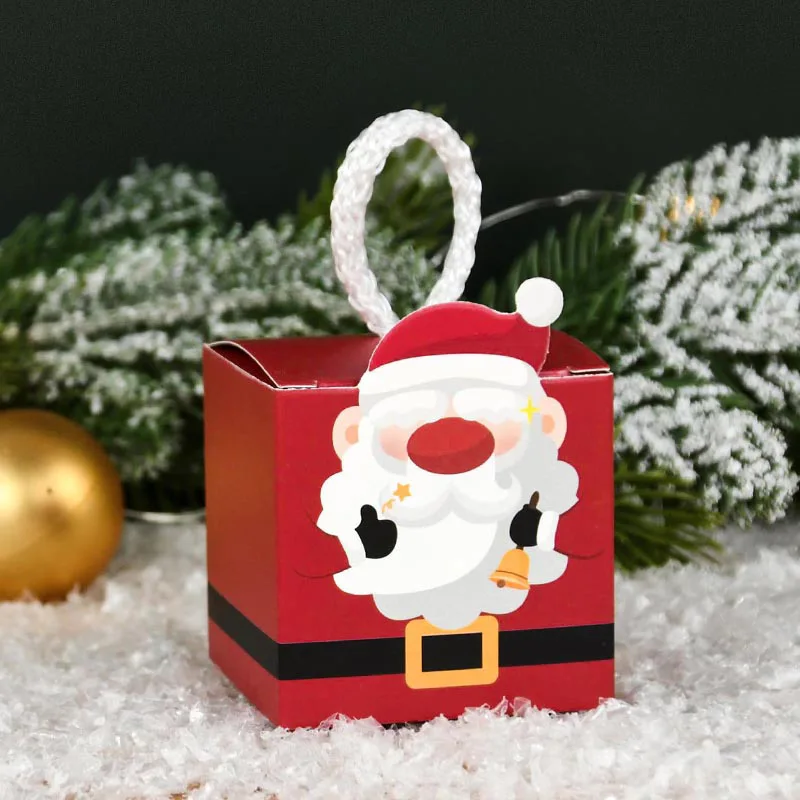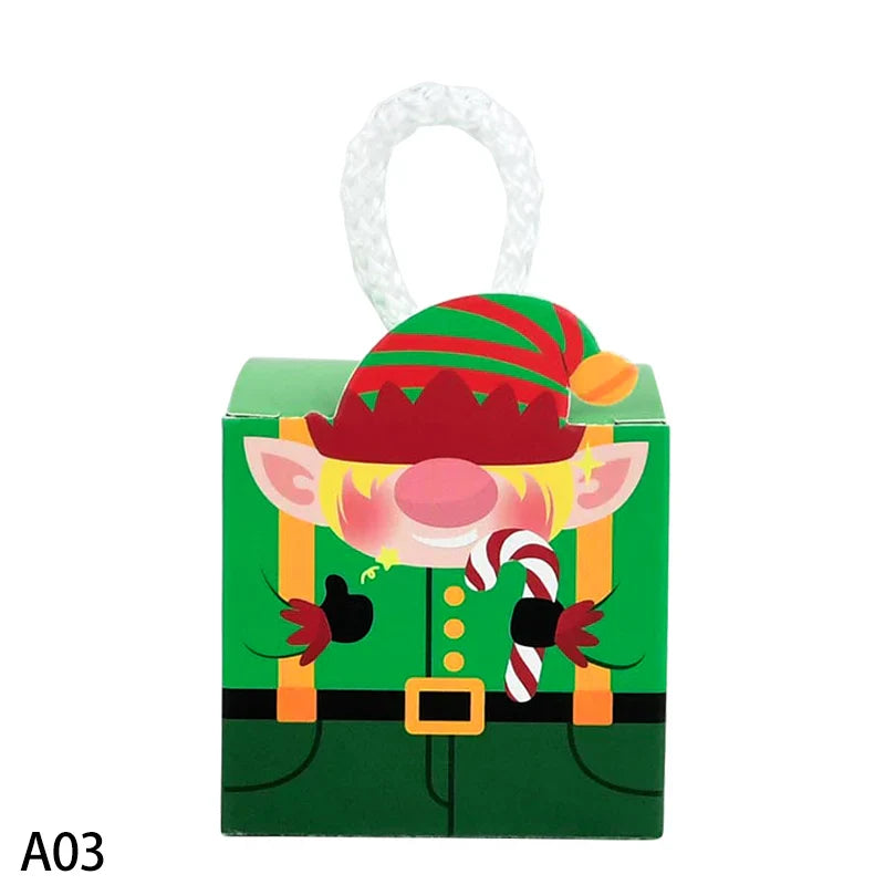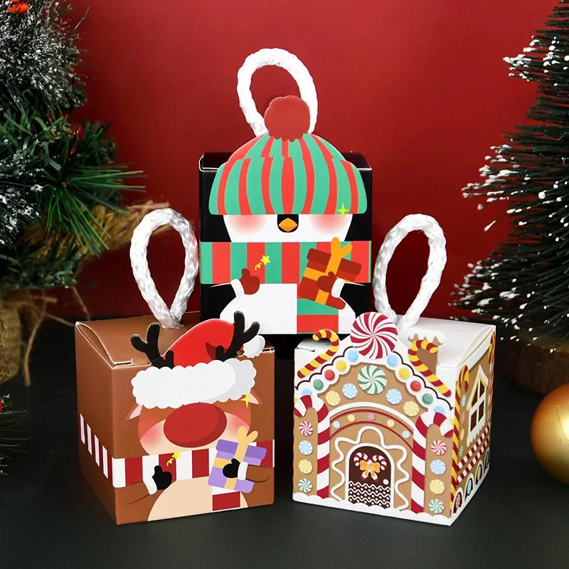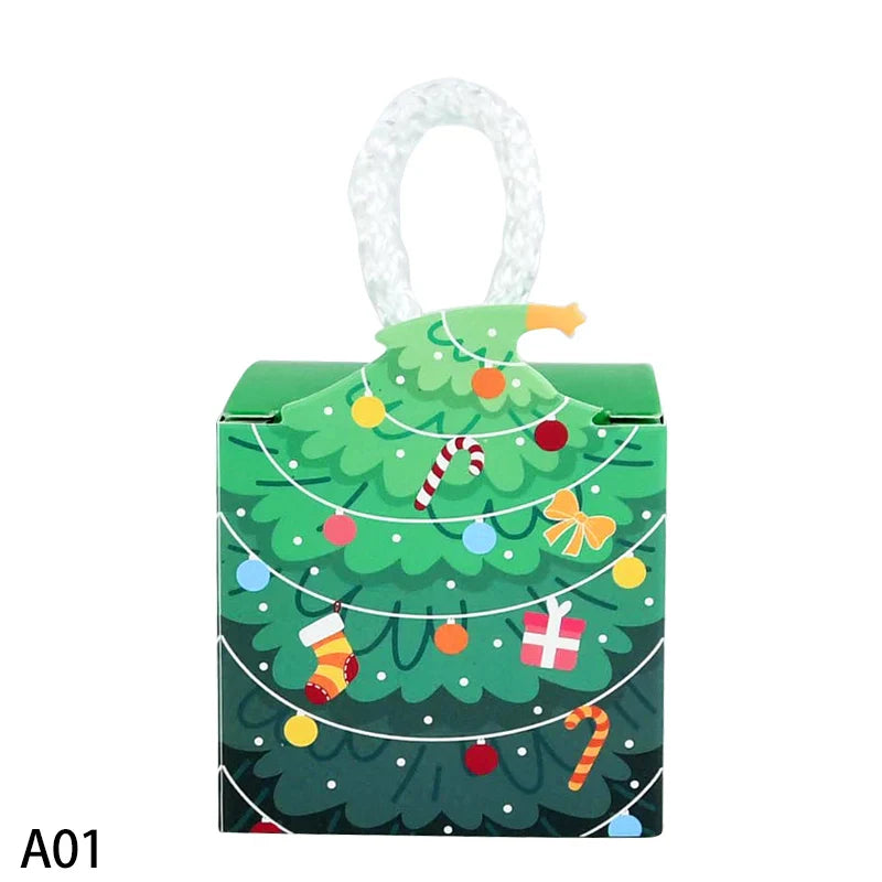 8Pcs Christmas Treat Boxes With Handles With Santa/Snowman/Christmas Tree Prints For Xmas Party Favor Packaging Gift Giving