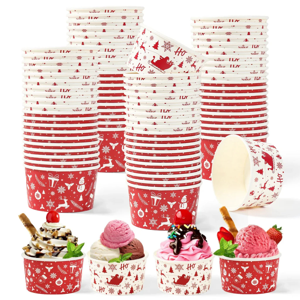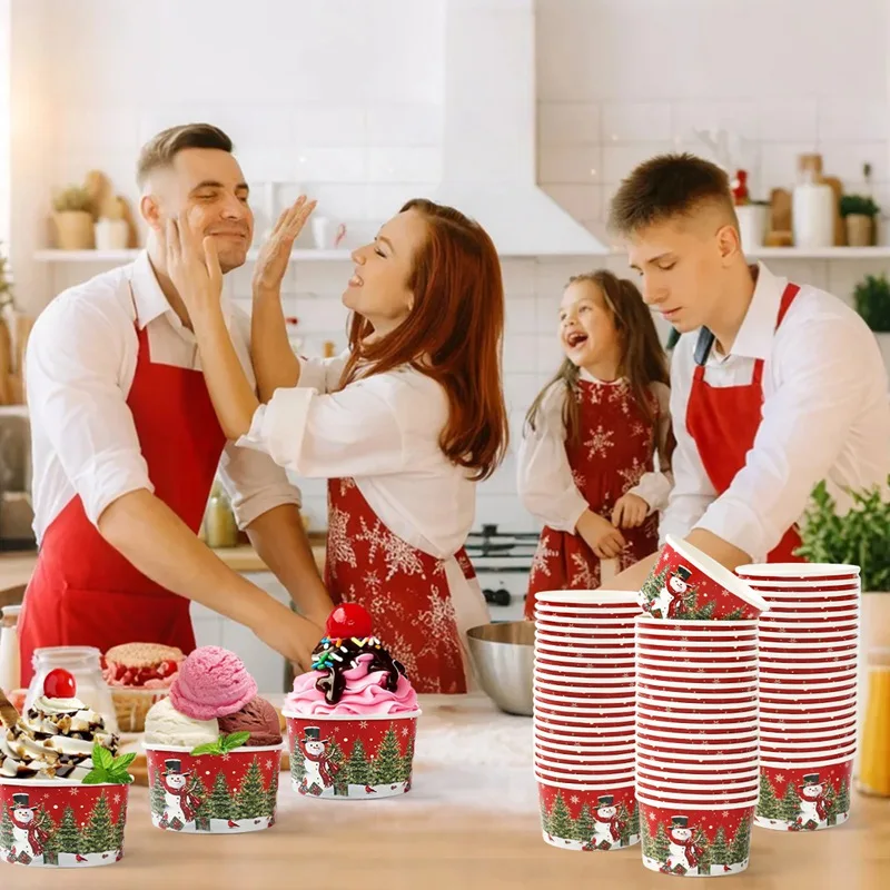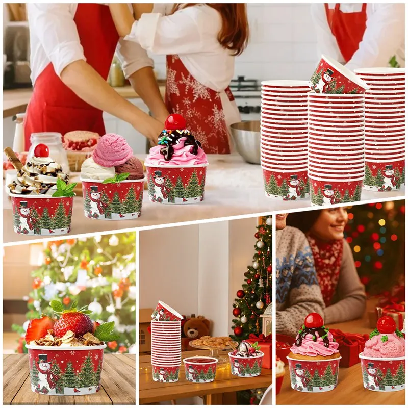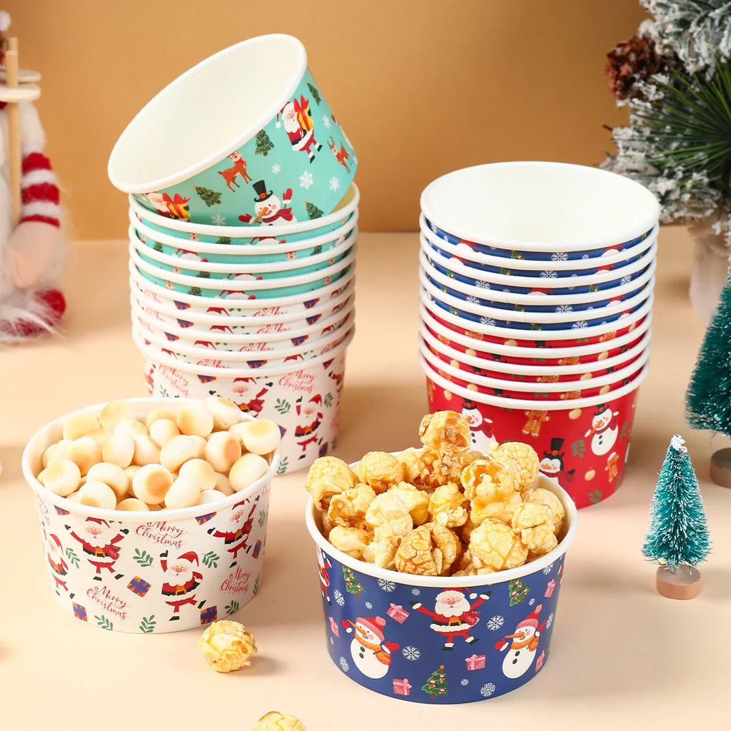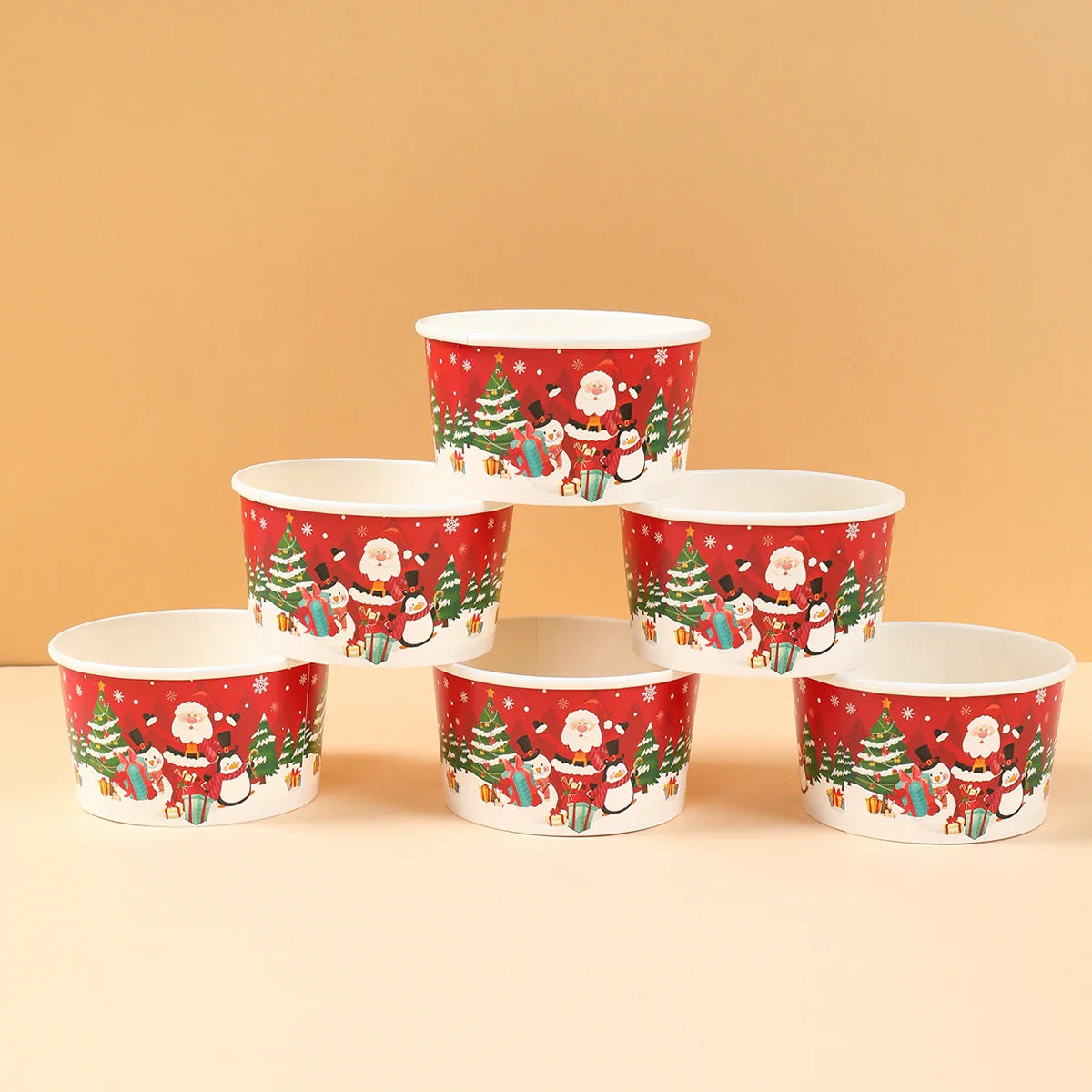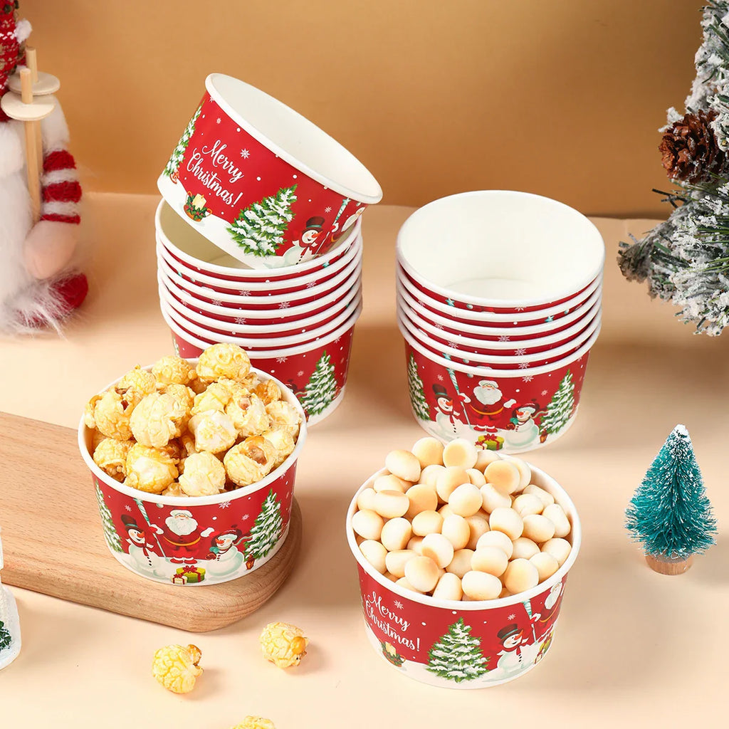 Christmas 8 oz Paper Bowl Ice Cream Cups Disposable Bowl Merry Christmas Decor For Home 2025 Navidad Natal Noel New Year 2026