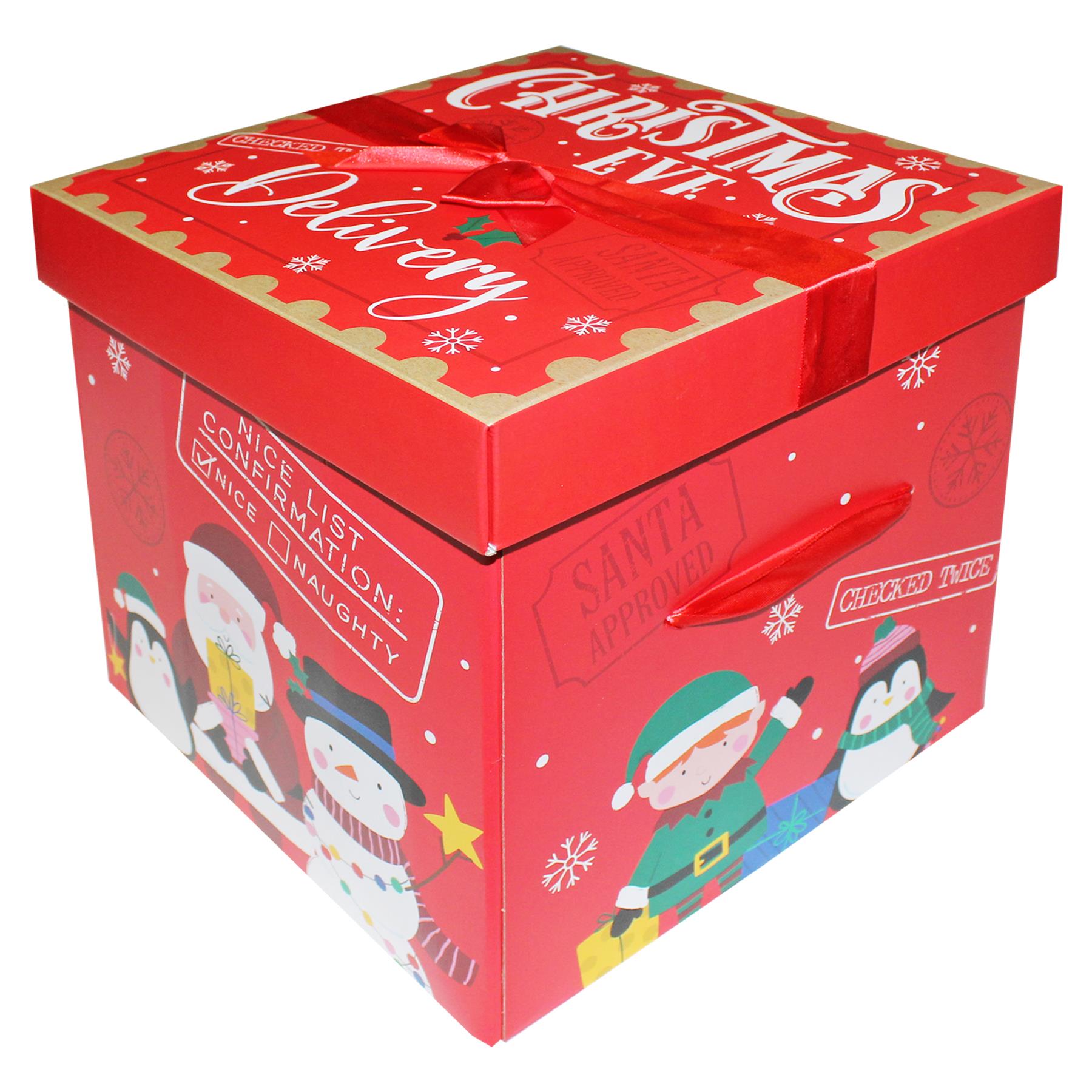 Christmas Eve Gift Box with Ribbon Bow 'Flat Pack' 28Cm X 27.5Cm - Characters