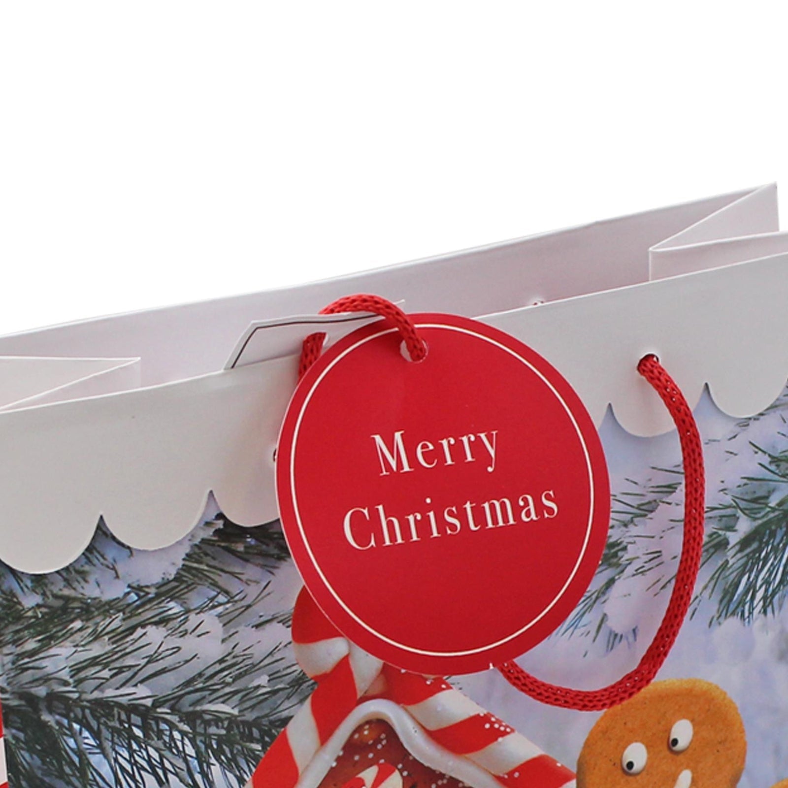 • The bags are adorned with tags that read "Merry Christmas," adding a personal touch to your presents.