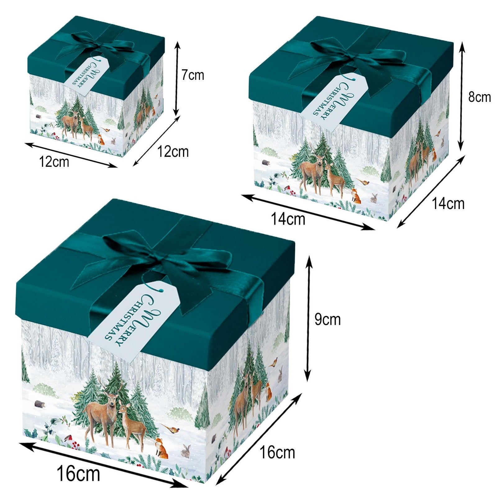 Christmas Gift Boxes 3 Pack Lift off Lids with Ribbon 12Cm 14Cm 16Cm - Woodland