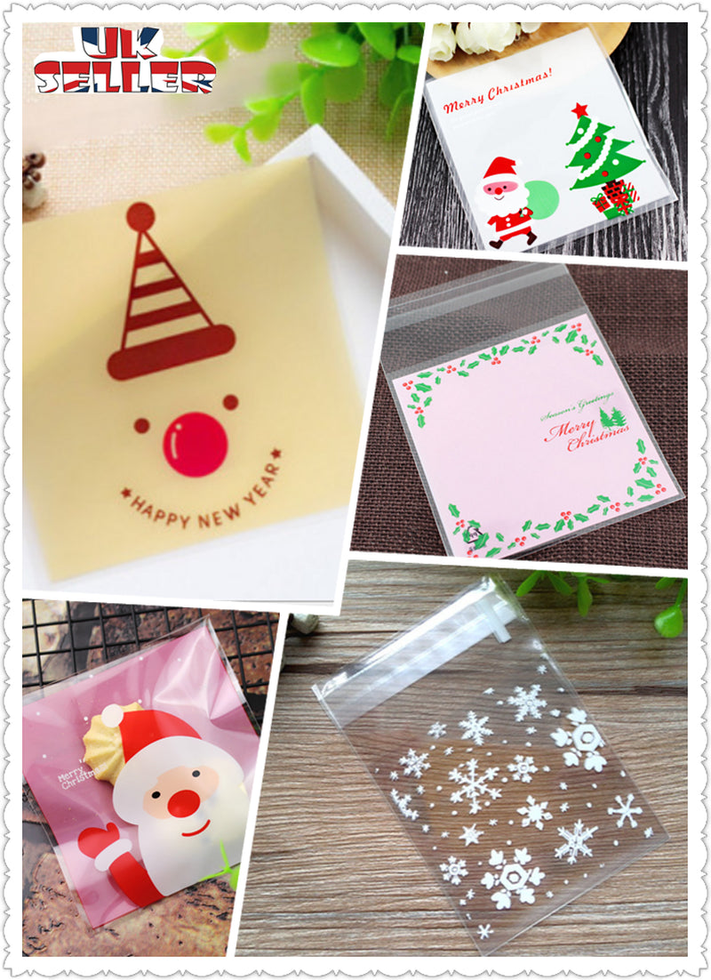 New Christmas 100pcs Self Adhesive Bag Cookie Candy Gift Packaging bags 10x10cm 100% Brand New and High Quality Product Name: Cookie Candy Gift Bags Use for Christmas Party Material: Plastic Size: 10*10+3cm Package: 1 pack (100pcs)Please Notes: Due to the different monitor and light effect, the actual colour of the item might be slightly different from the colour showed on the pictures. Thank you!