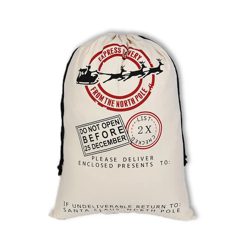 Santa Sacks Cotton Canvas Children Gift Bag, Reindeer Stocking,Christmas Drawstring Socks,Large Size Candy Toys Bags, 50*70cm