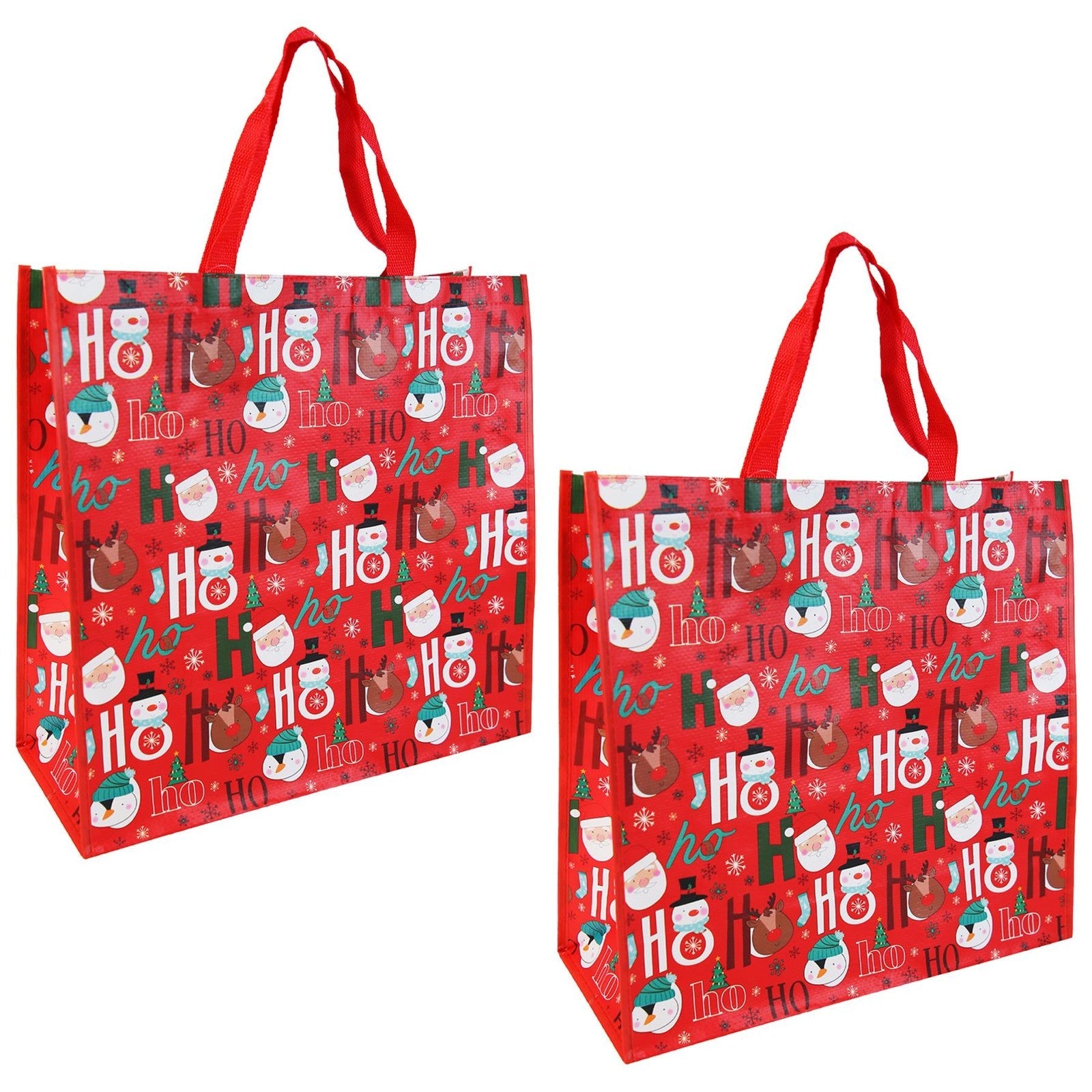 Set of 2 Large Christmas Gift Bags Xmas Presents Woven 45Cm X 45Cm - Ho Ho Ho