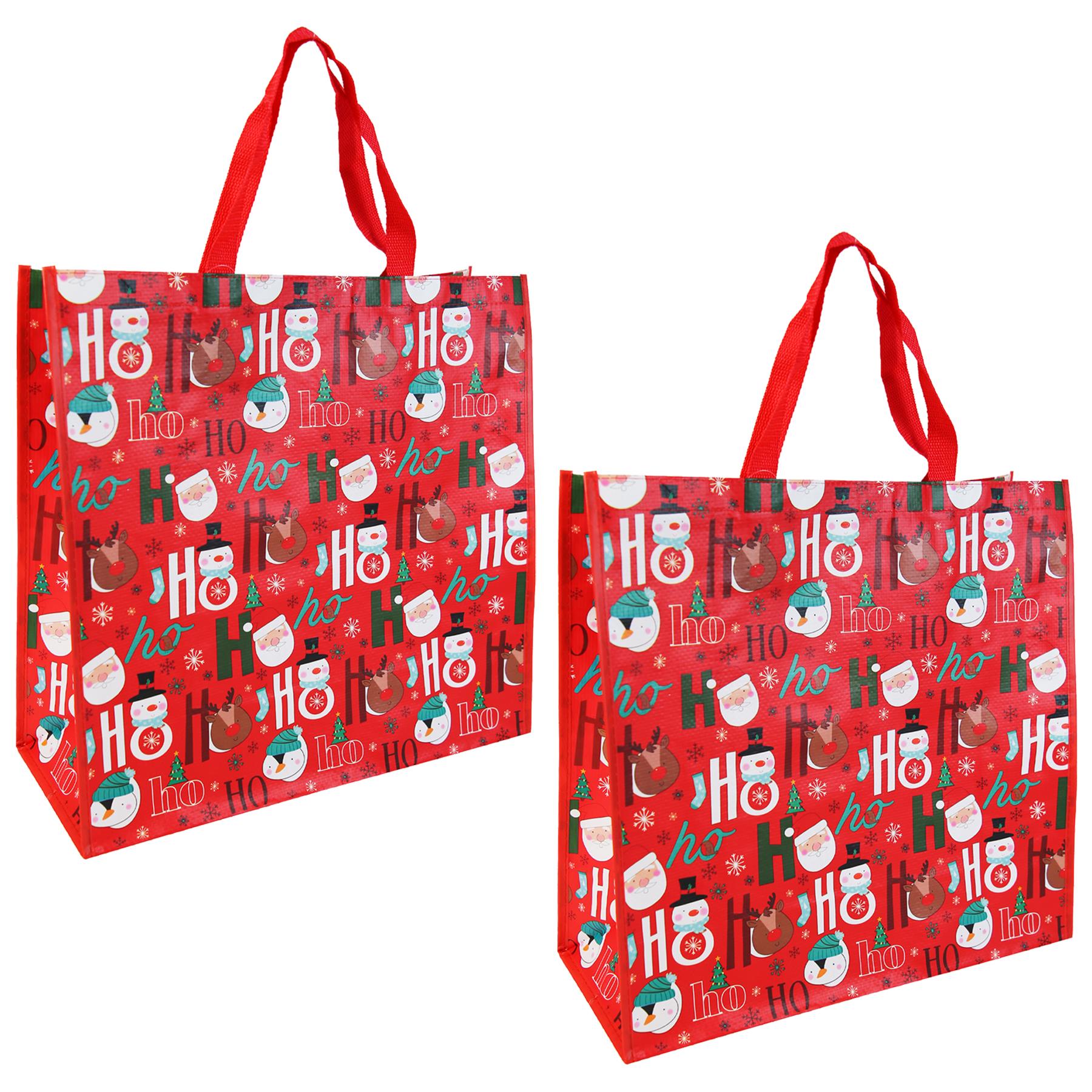 Set of 2 Large Christmas Gift Bags Xmas Presents Woven 45cm x 45cm - Ho Ho Ho