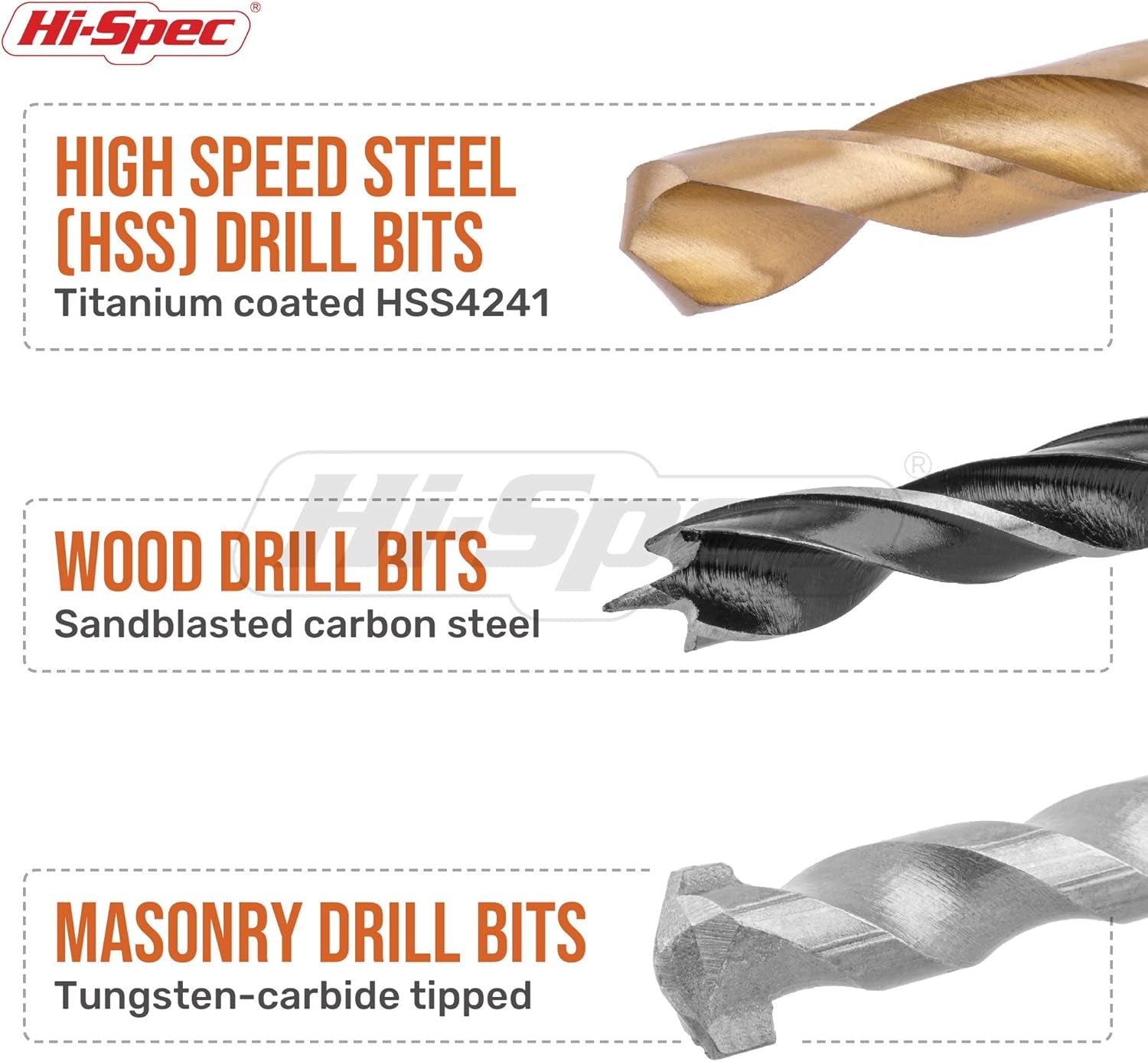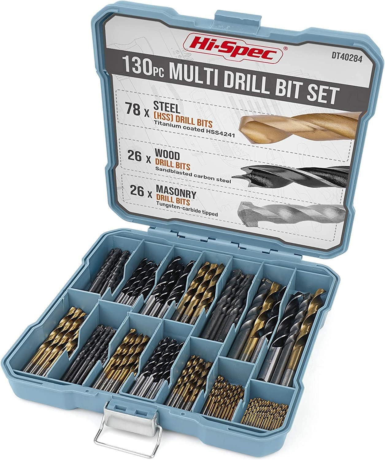 Hi-Spec 130pc Multi ‎Metric Drill Bit Set. 1/16in to 3/8in. All in a Tray Case