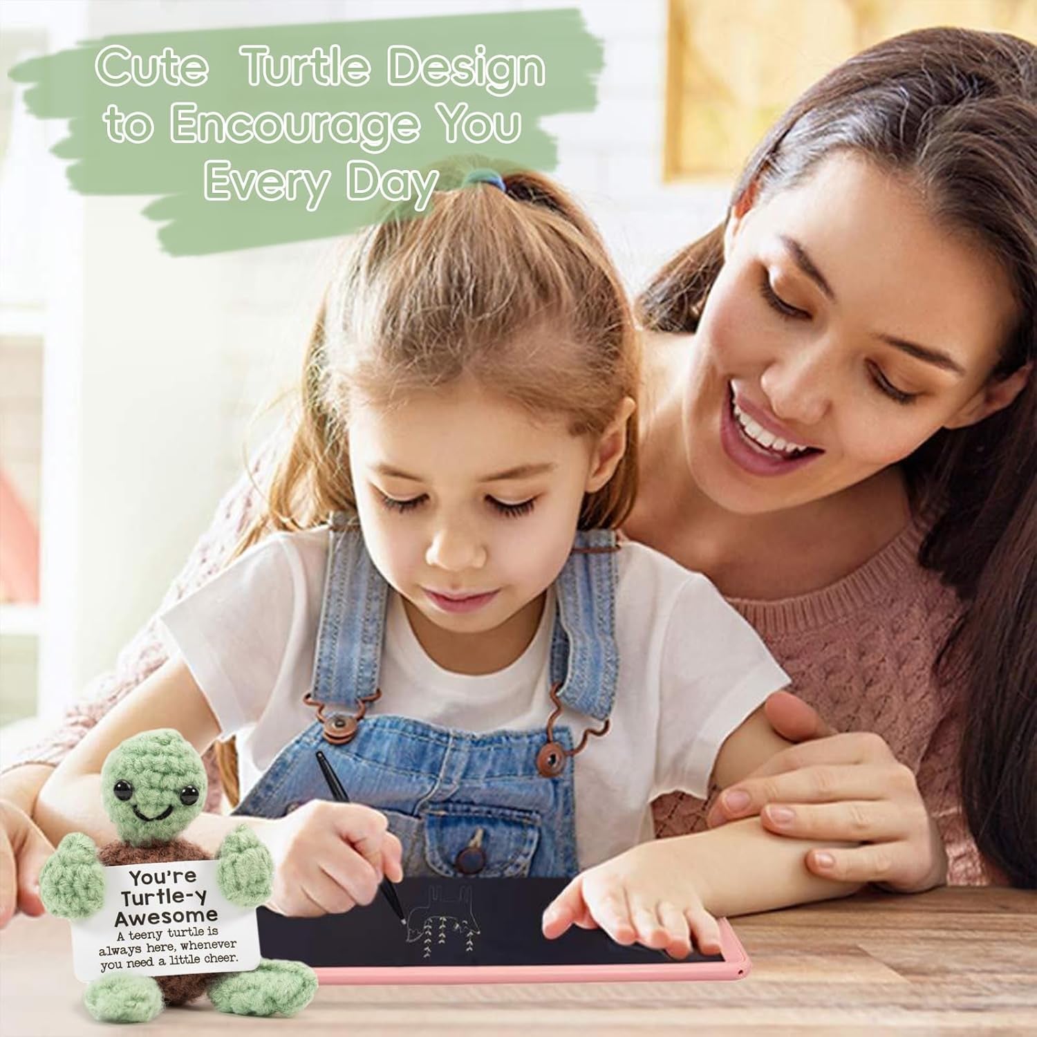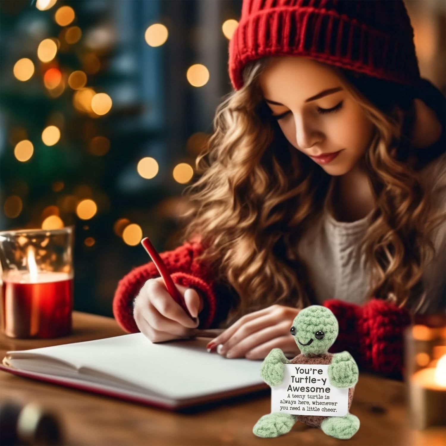 Funny Positive Turtle Gifts, Small Handmade Crochet Animals Cute Stuff, Birthday Gifts for Women, Emotional Support Presents for Women Christmas Home Desktop Decor (Green) - Green is backordered and will ship as soon as it is back in stock.
