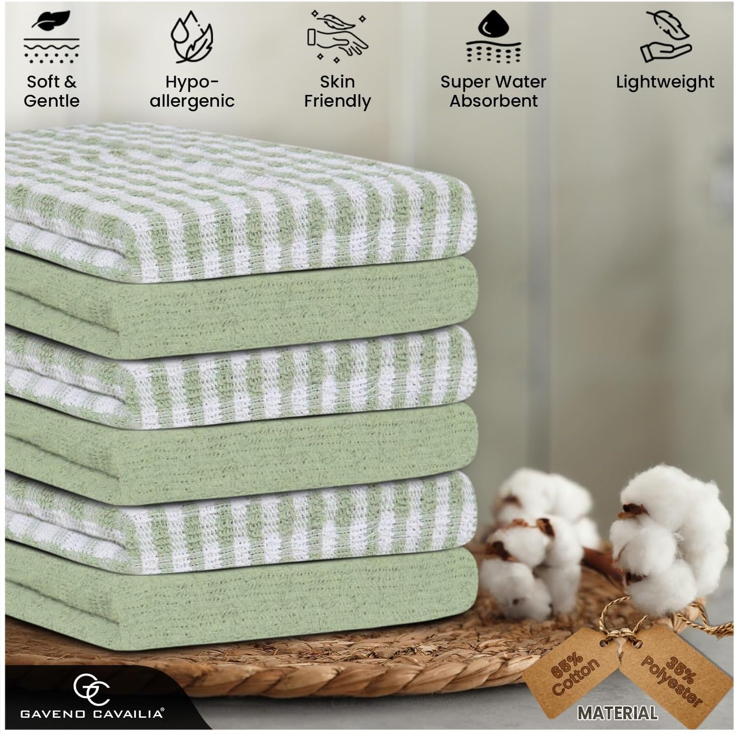 Large Tea Towels Pack of 16 | 46 X 65 Cm Sage Green Check Tea Towels Bar Kitchen Towels Set | Absorbent Chef Tea Towel Dish Cloths for Washing & Cleaning | 35% Polyester, 65% Cotton Dish Towels