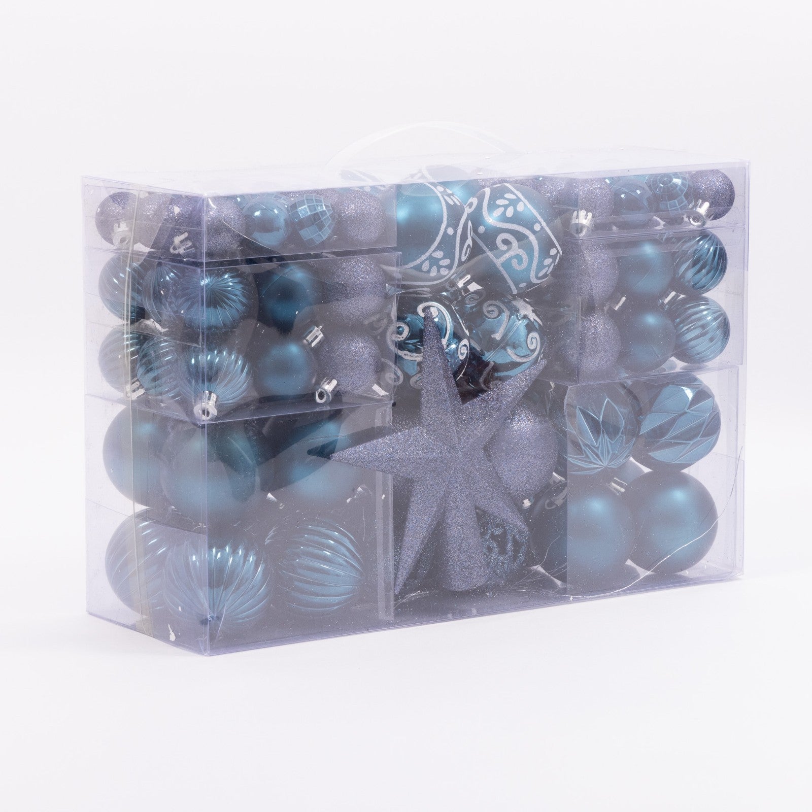 100 Piece Christmas Tree Decoration Set – Baubles, Star & Bead Garland