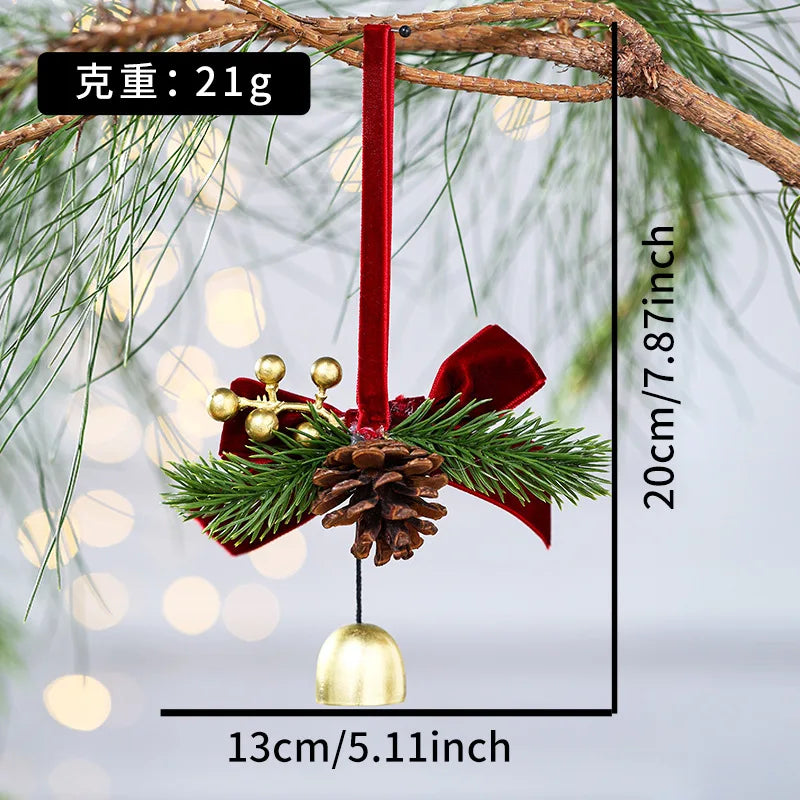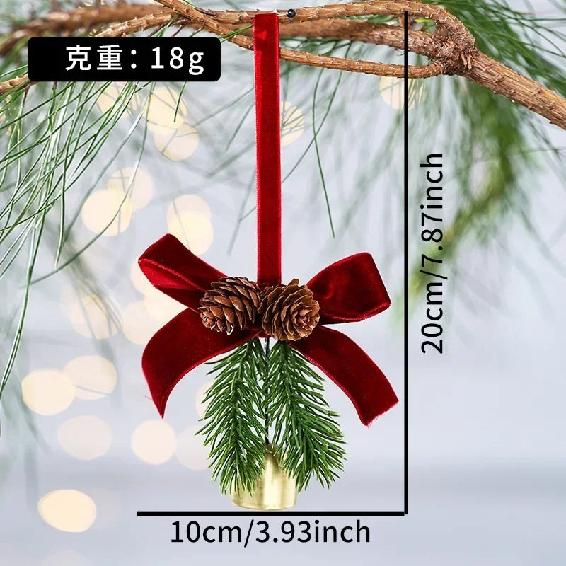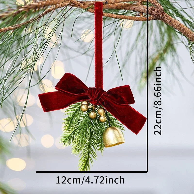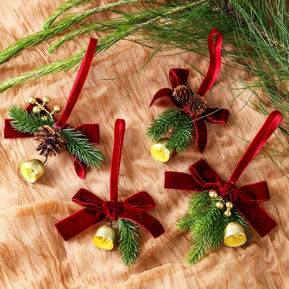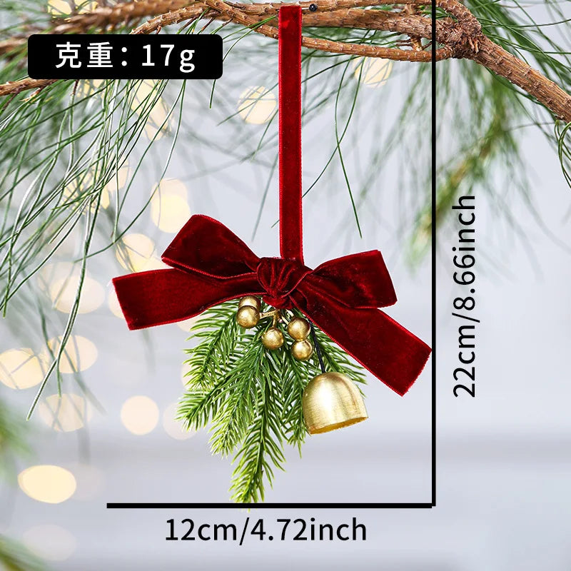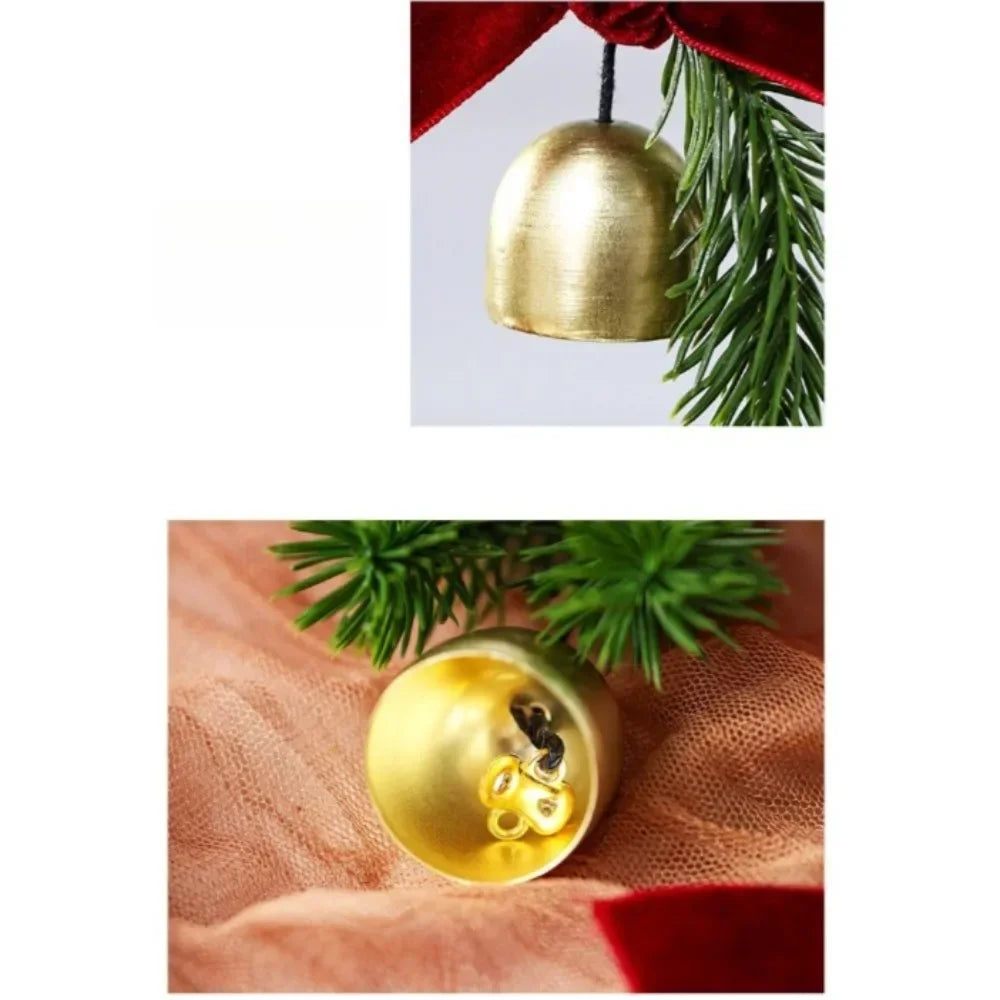 Design Rich red velvet bow + shiny golden bells + lifelike pine foliage (classic Christmas tones).