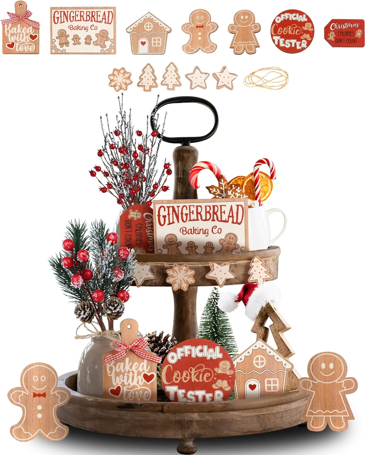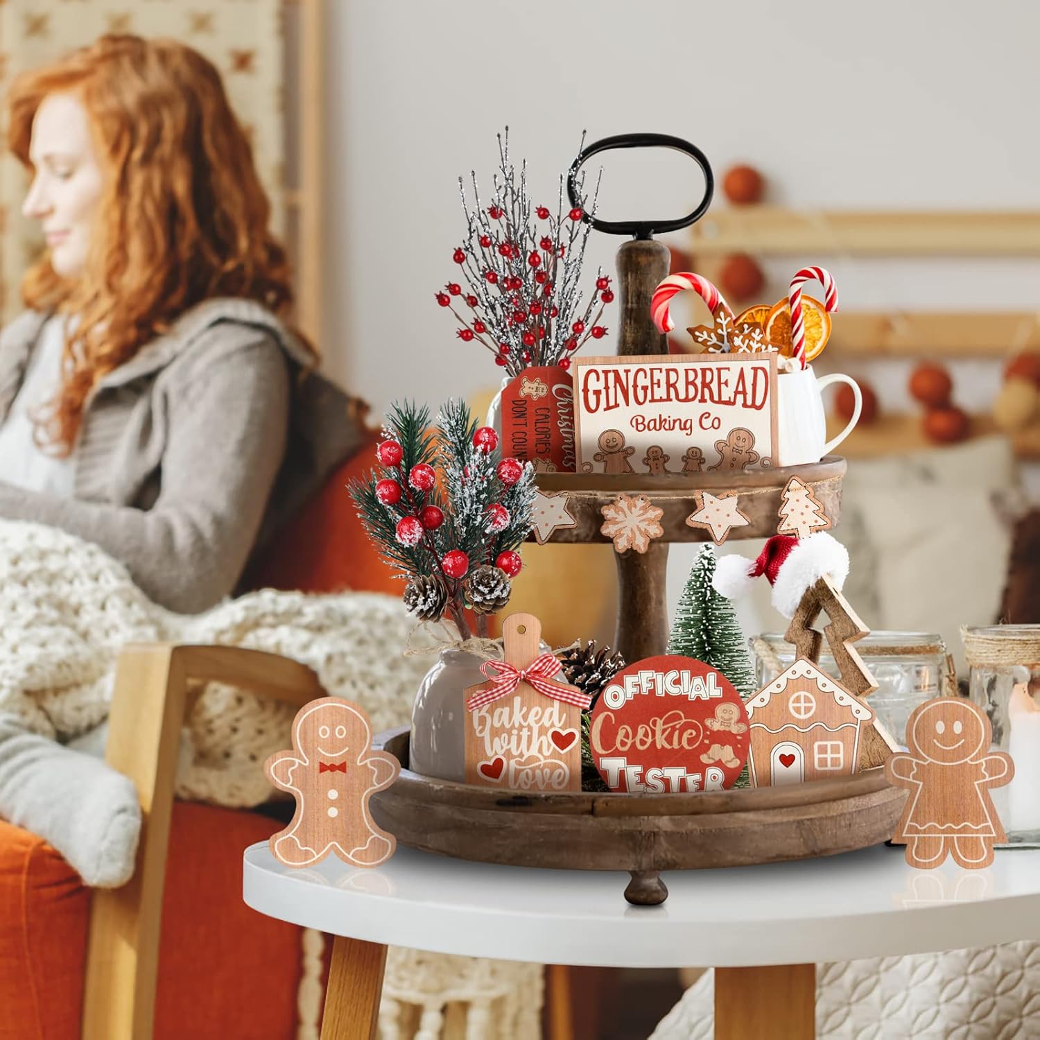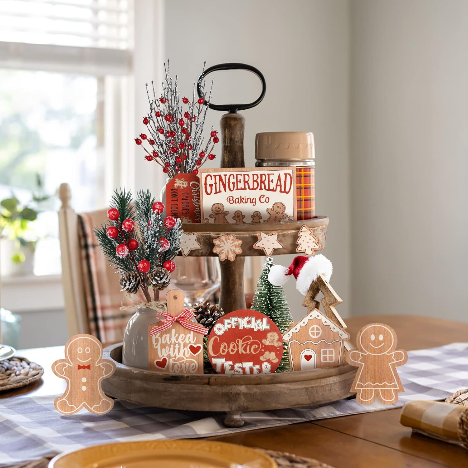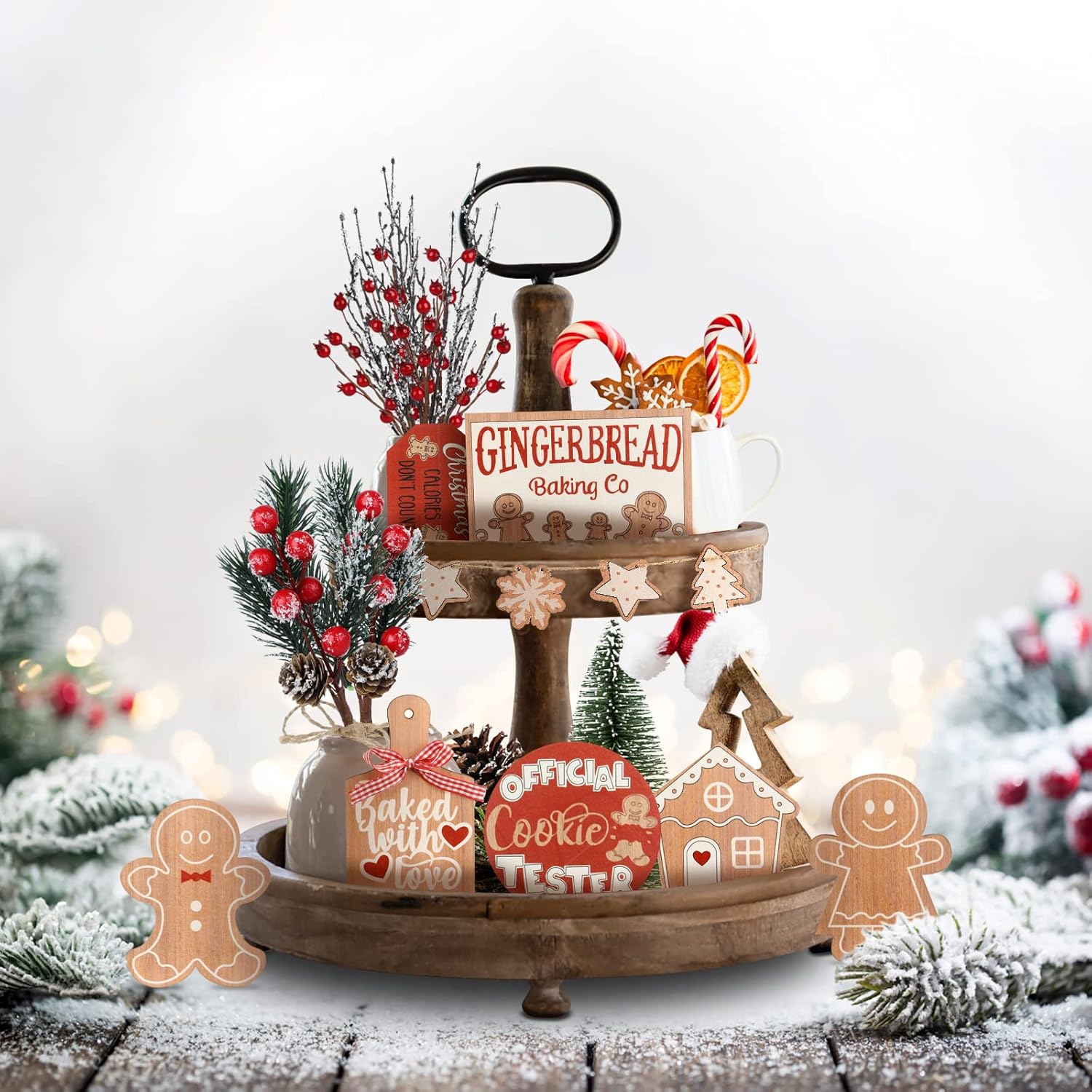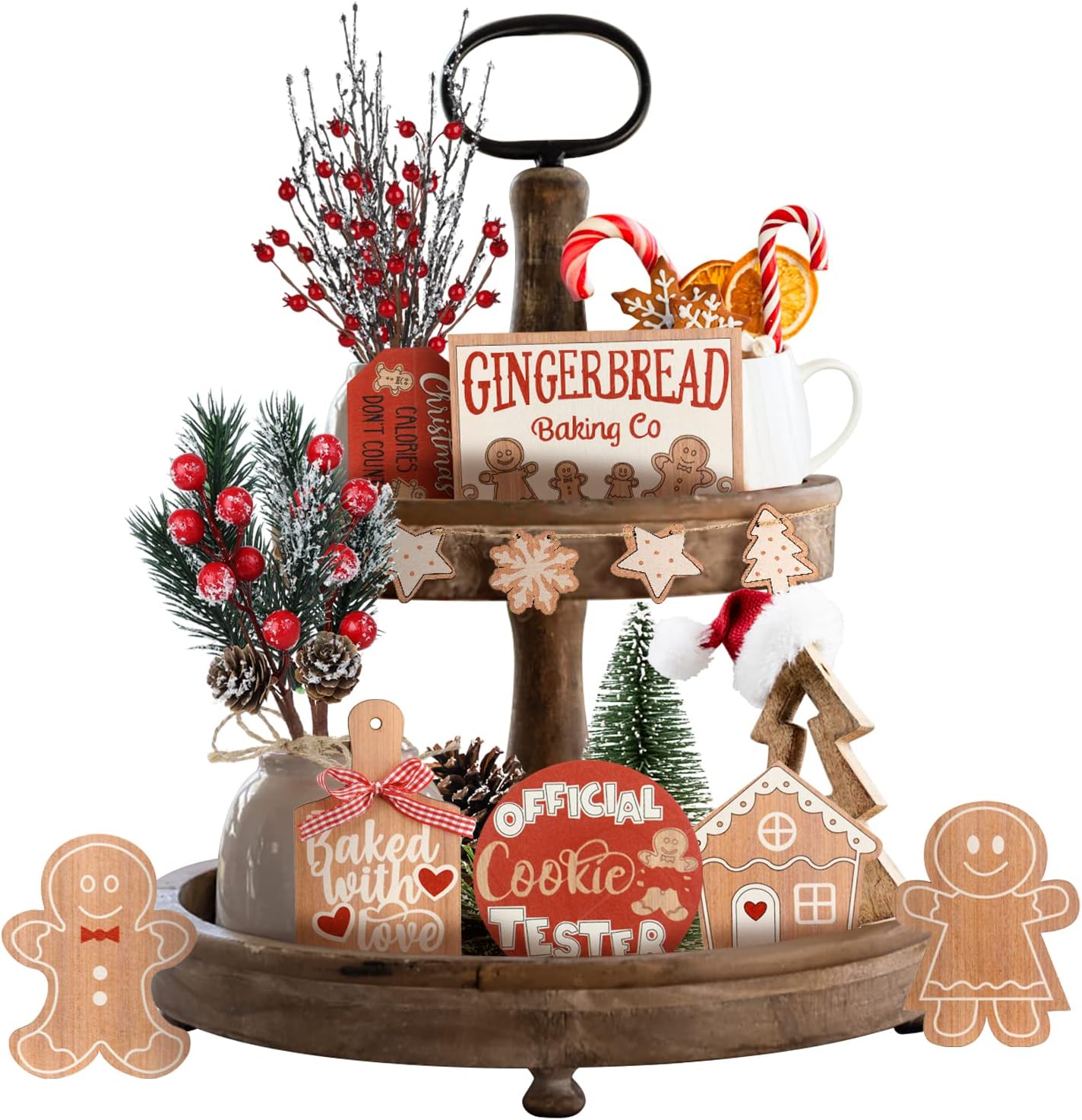 Christmas design: The wooden layered tray table decoration incorporates a large number of Christmas elements such as gingerbread men, plaids, snowmen, etc. The exquisite patterns are designed in bright colors, which are in line with the theme of the festive atmosphere and bring you a pleasant visual enjoyment. Filled with innocence and bright colors, it is eye-catching and attractive, giving you a stunning visual that is perfect for festive party tables and office displays.