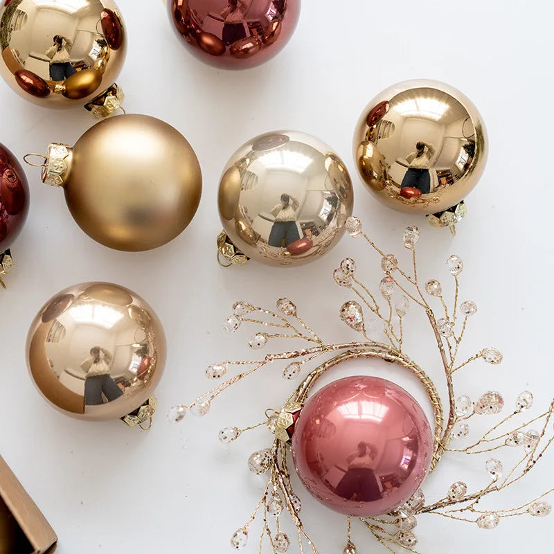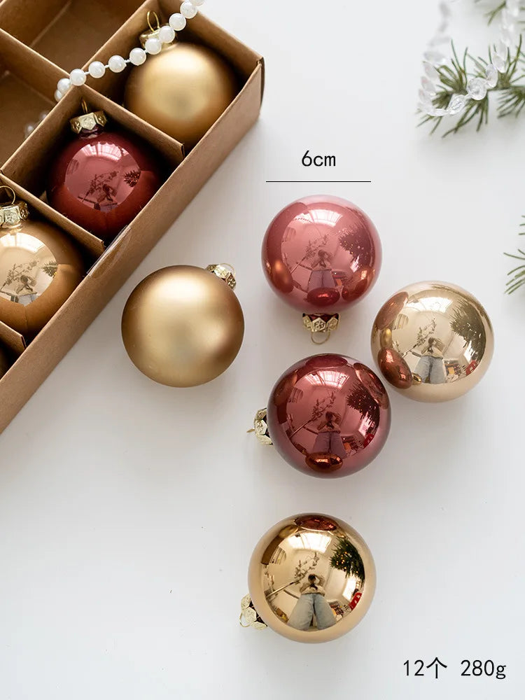 12pcs 6cm Glass Christmas Ball Ornaments Luxury Texture Tree Party Decoration Christmas Spheres Pendant 2025 New