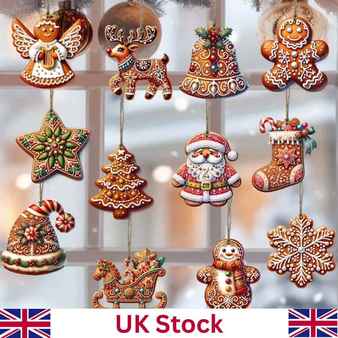 Bring warmth and charm to your holiday décor with this set of 12 wooden gingerbread motifs. Perfect for Christmas trees, wreaths, garlands, or table decorations, these ornaments add a traditional festive touch to your home.