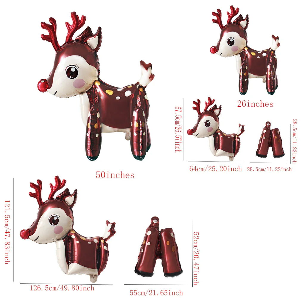 26/50 inch 3D Assemble Christmas Elk Rudolph Foil Balloons Christmas Decoration Navidad 2026 Decoration 3pcs/set