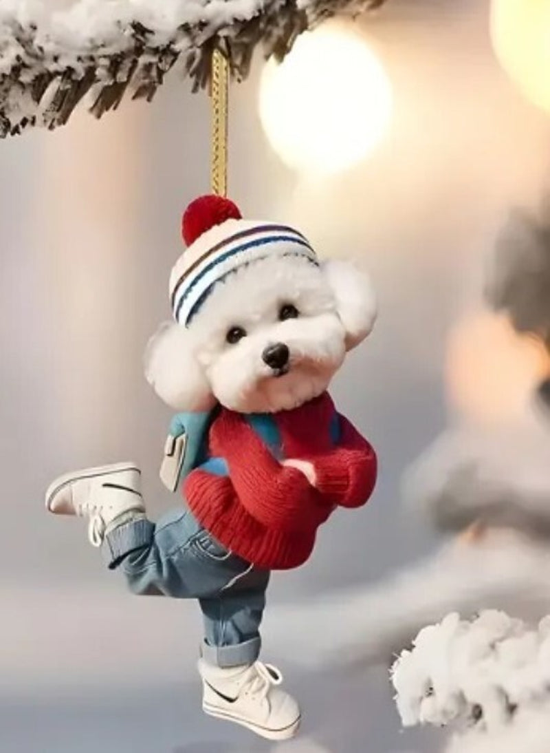 2D Acrylic Christmas Hanging Decoration - Cute White Puppy - New is backordered and will ship as soon as it is back in stock.