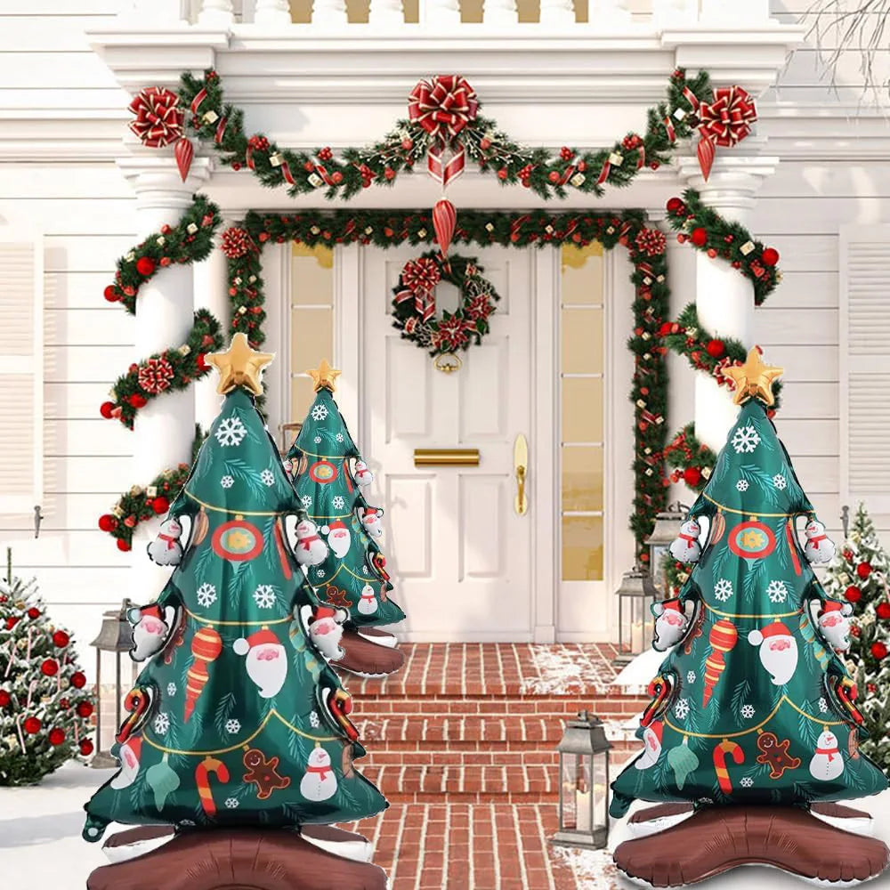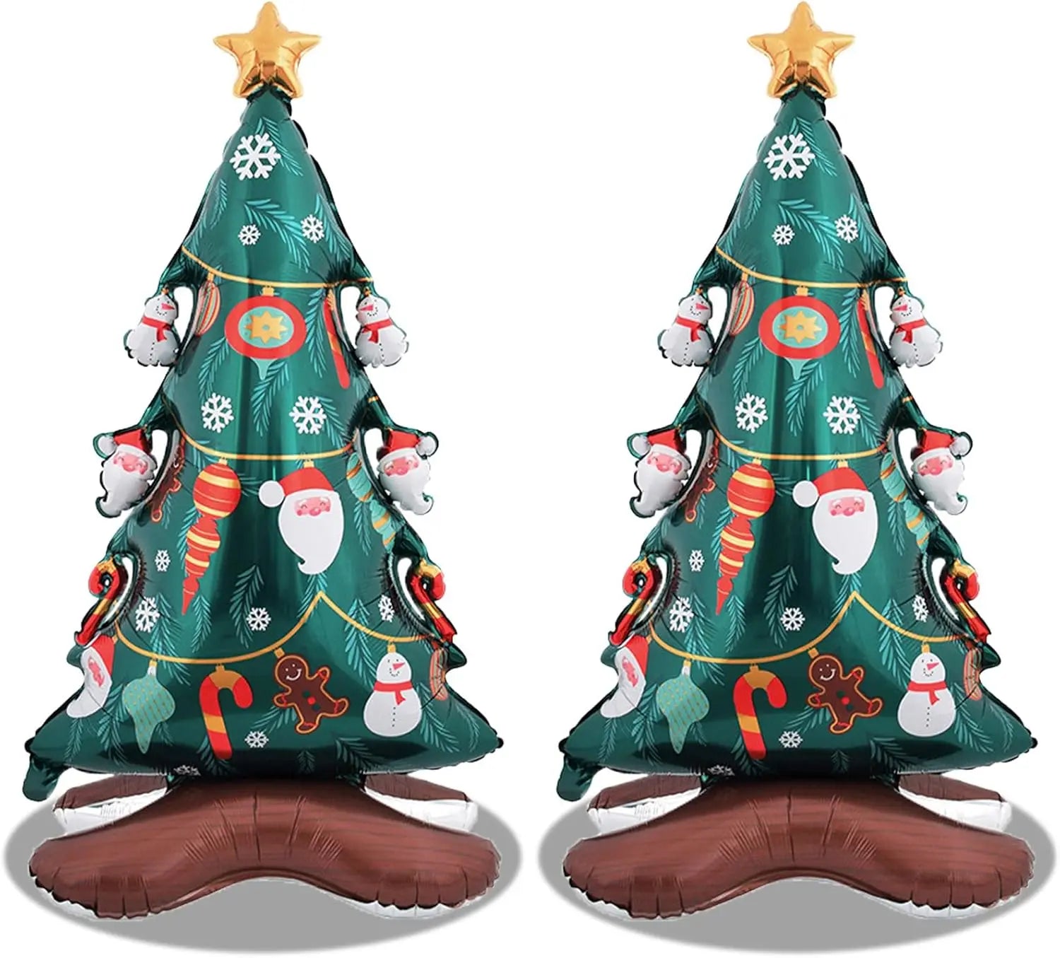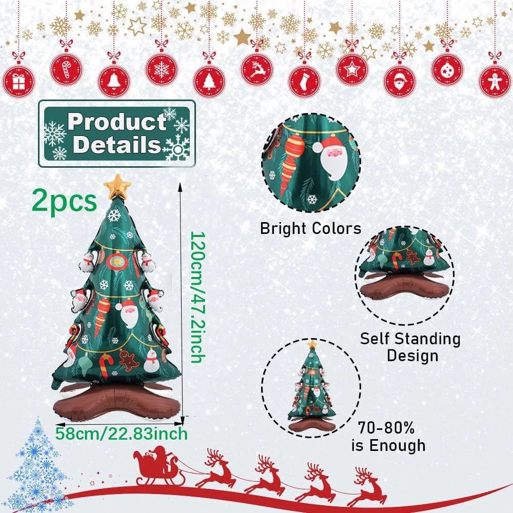 2pcs 3D Christmas tree balloons with Santa Claus decorations, aluminum foil balloons for Christmas parties, home decor