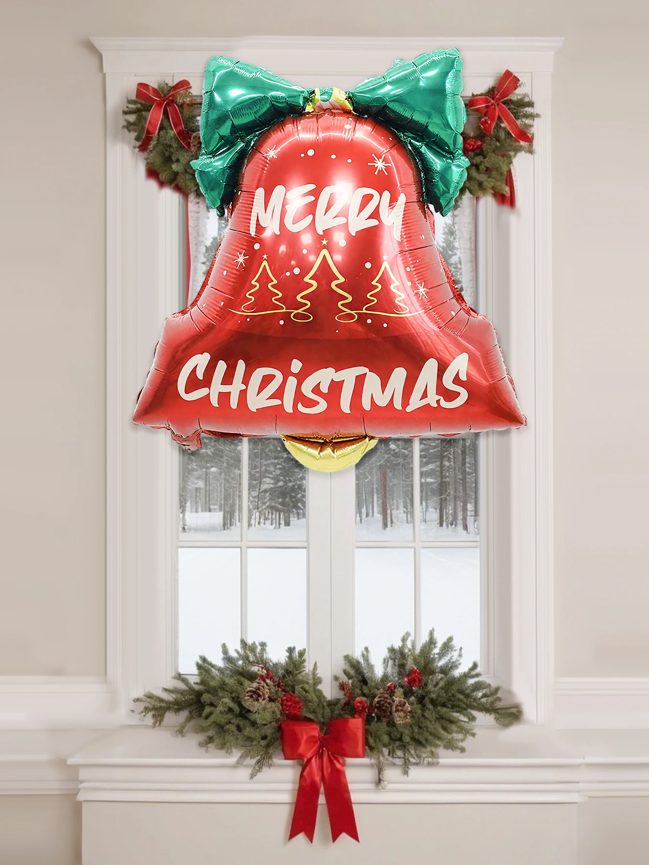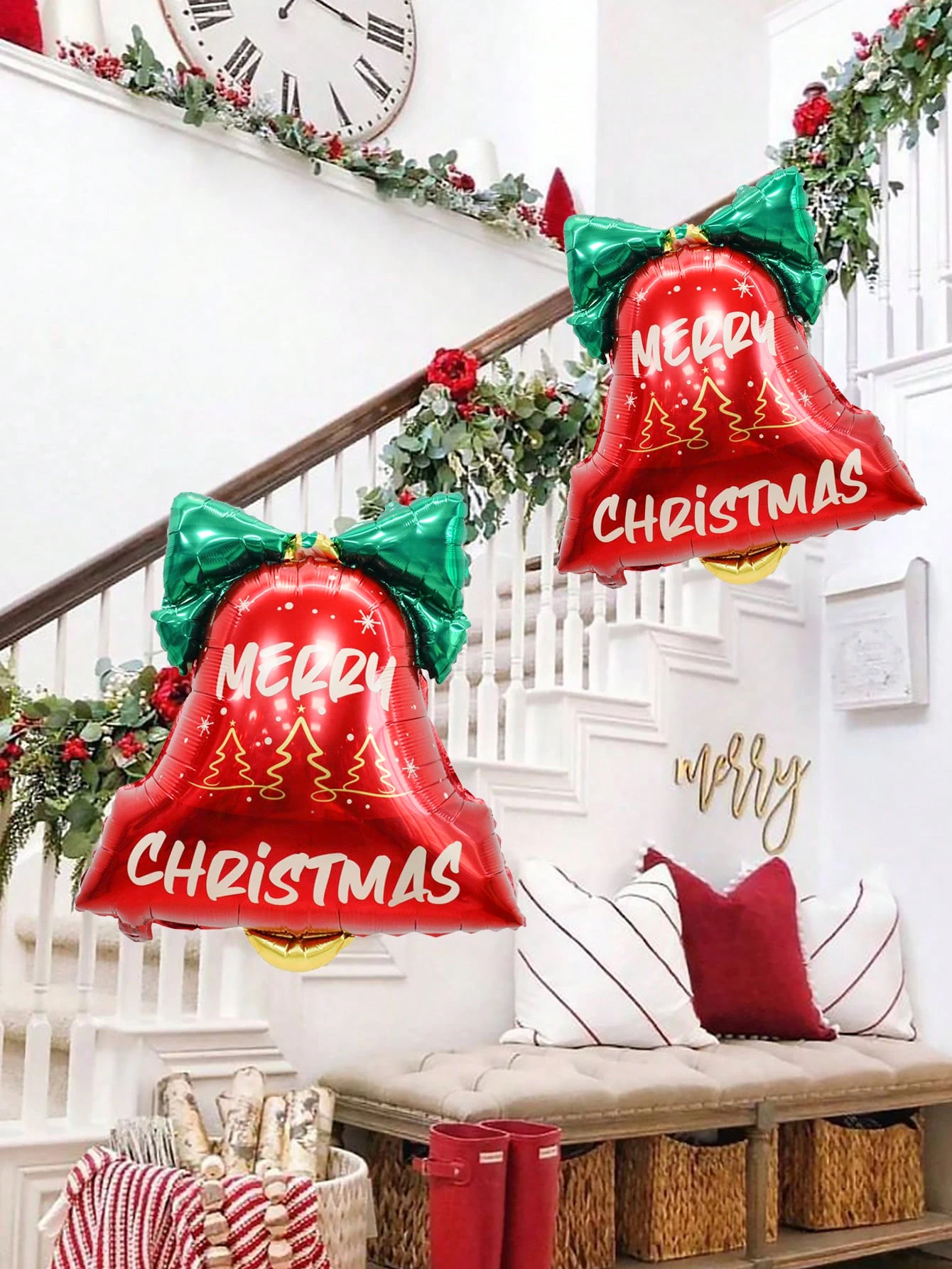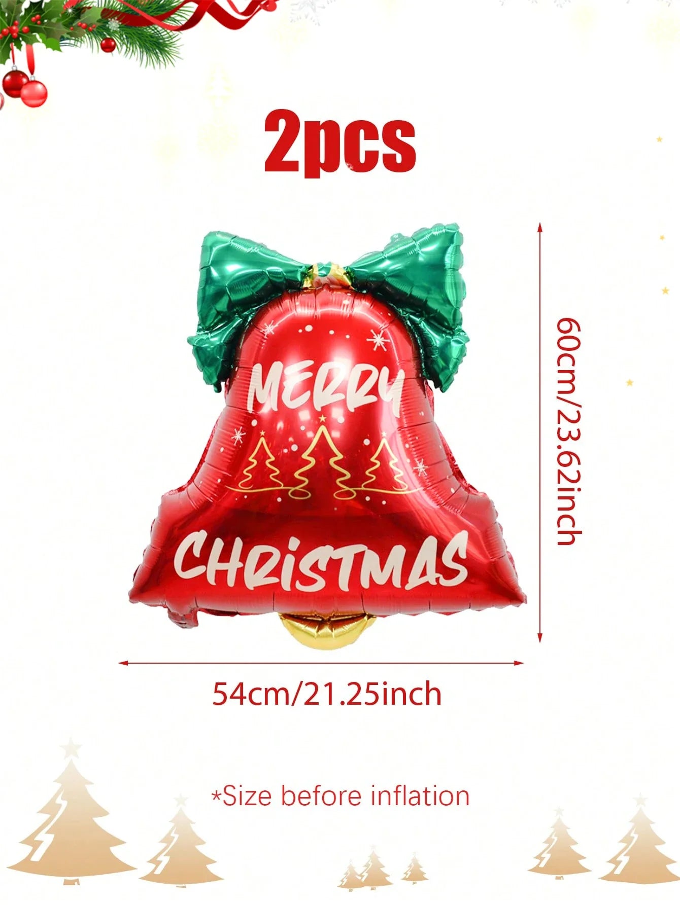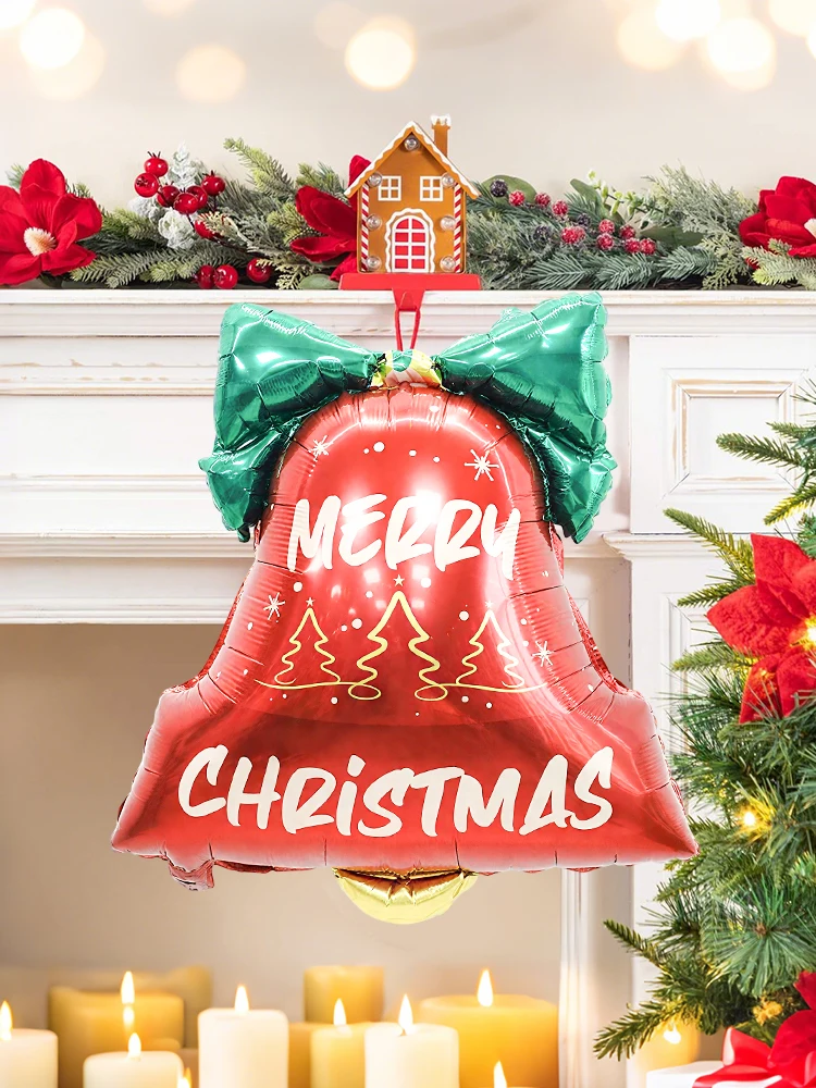2pcs Christmas bell aluminum foil balloons, bow bell shape design, suitable for Christmas decoration, Christmas party