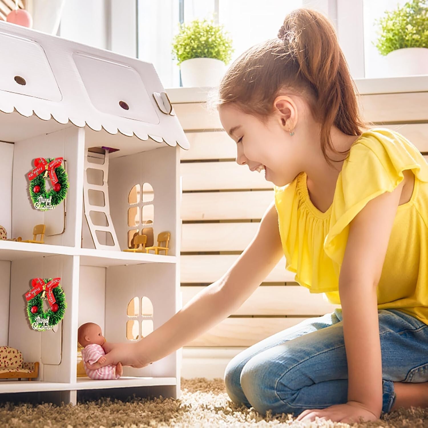 【Excellent Workmanship】These dollhouse miniature wreaths are designed in green garland, red bows and berries, and gold bells, while also decorated with gold Merry Christmas letters, which is adorable and exquisite and full of festival ambiance, leaving you and your family in a warm and pleasant mood. Every little girl has a great interest in playing with doll houses. And this can make the dollhouse look very attractive and stylish.