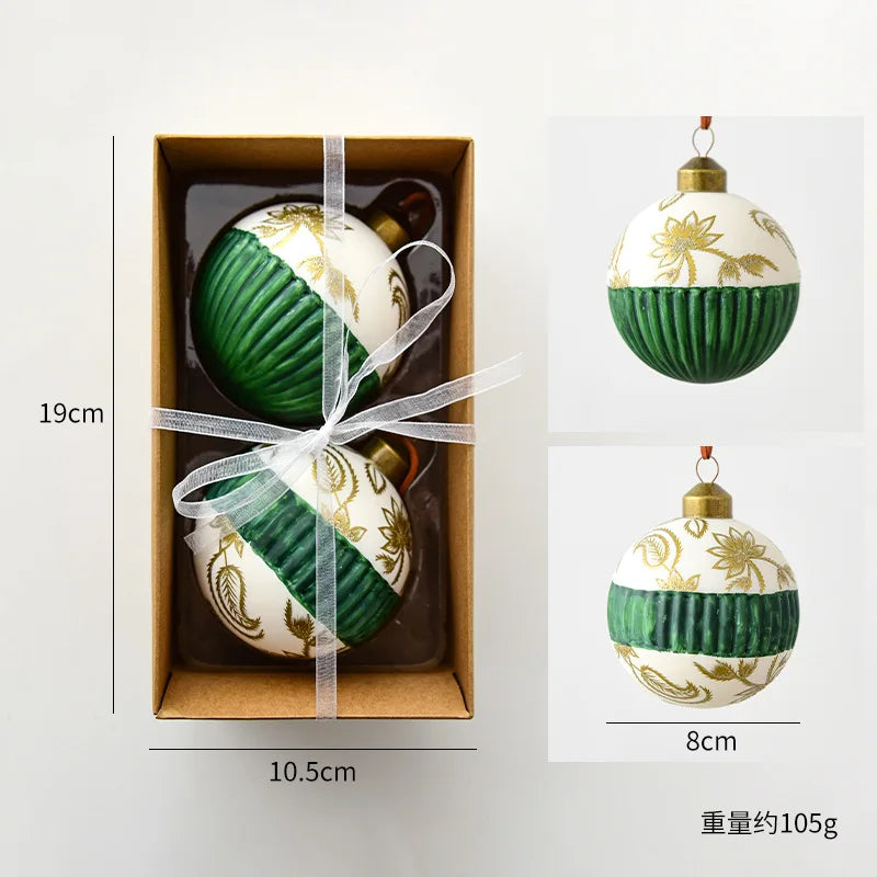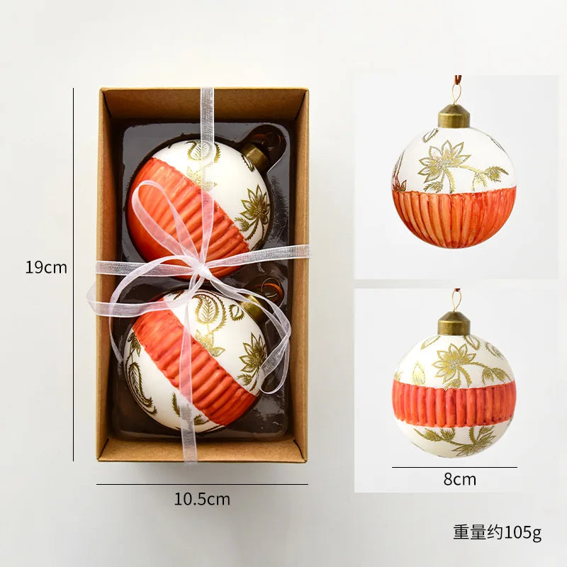 8cm 2pcs Glass Christmas Ball Ornaments Painted Luxury Christmas Tree Party Decoration Set Christmas Spheres Pendant 2025 New