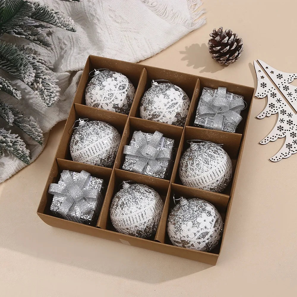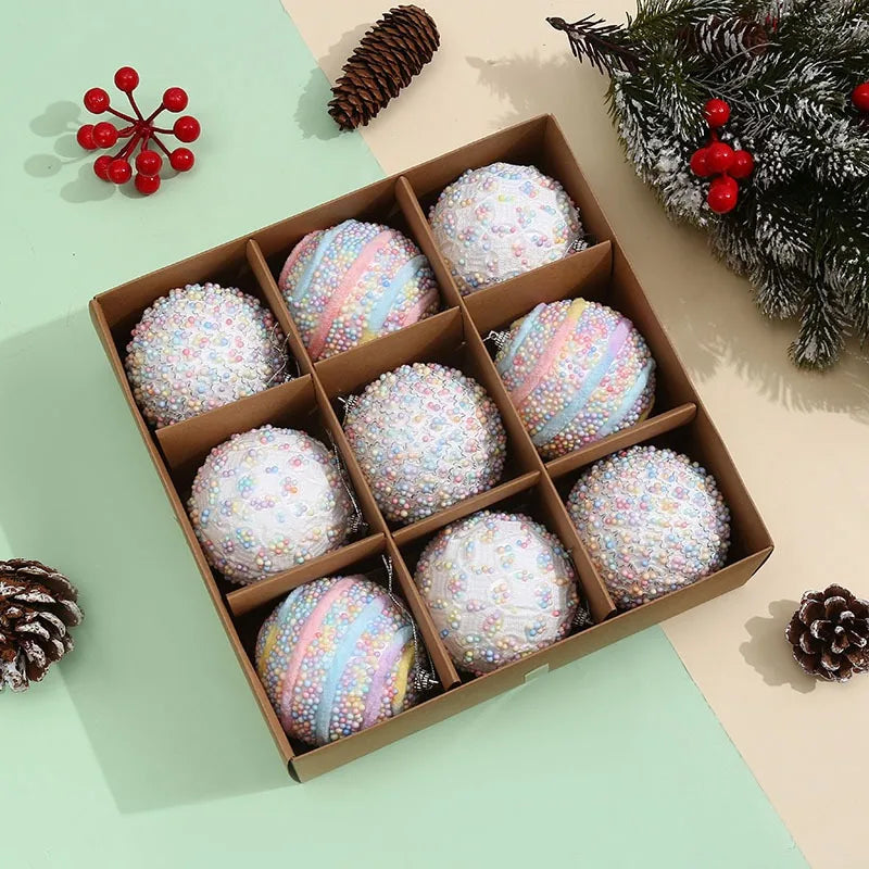 9Pcs 8cm Christmas Balls Foam Painted Xmas Decorative Hanging Ornaments Christmas Spheres Pendant 2025 New