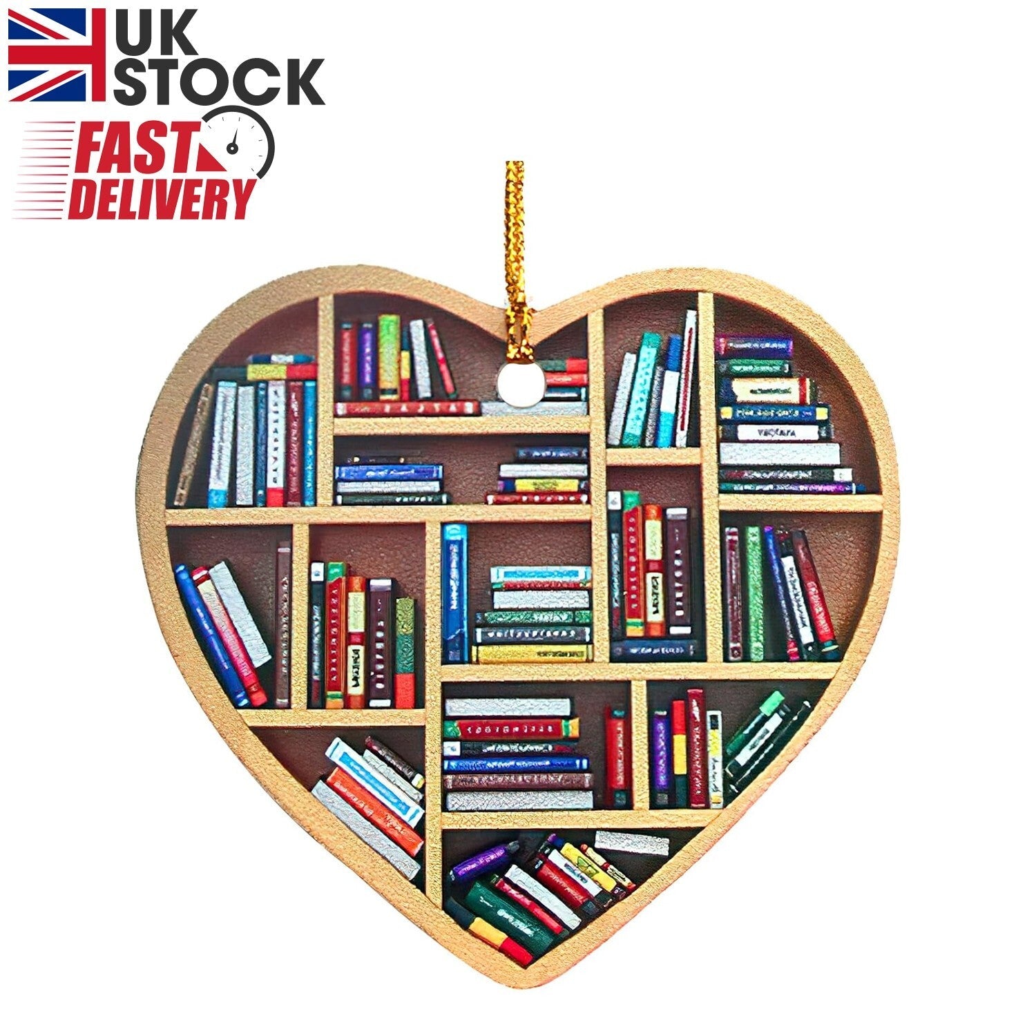 1. The book lover christmas ornaments is made of high-quality acrylic material, which is durable, not easy to break. It just looks like a wooden product.