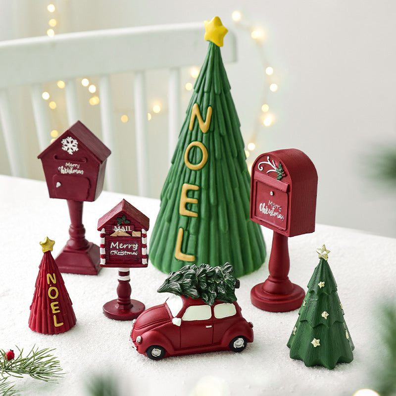 Color: House snowflake letter box/203g,Red mailbox/240g,Red letter tree/63g,Car christmas tree/177g,Green three-layer tree/85g