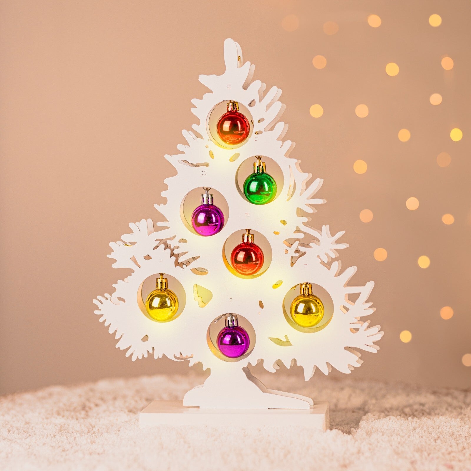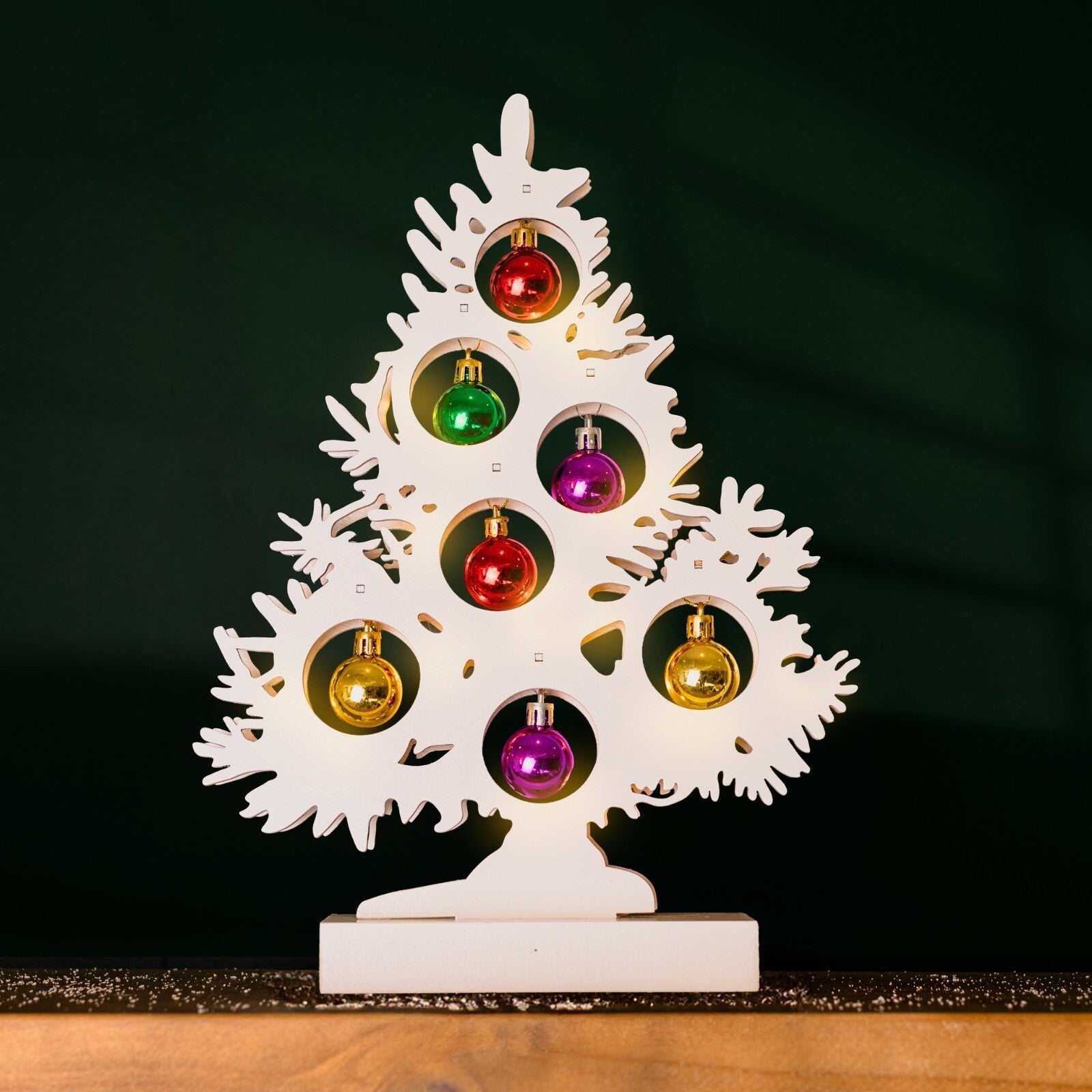 Decorated with Baubles, all you need to do is pop batteries in, switch on and leave the rest to this little tree.